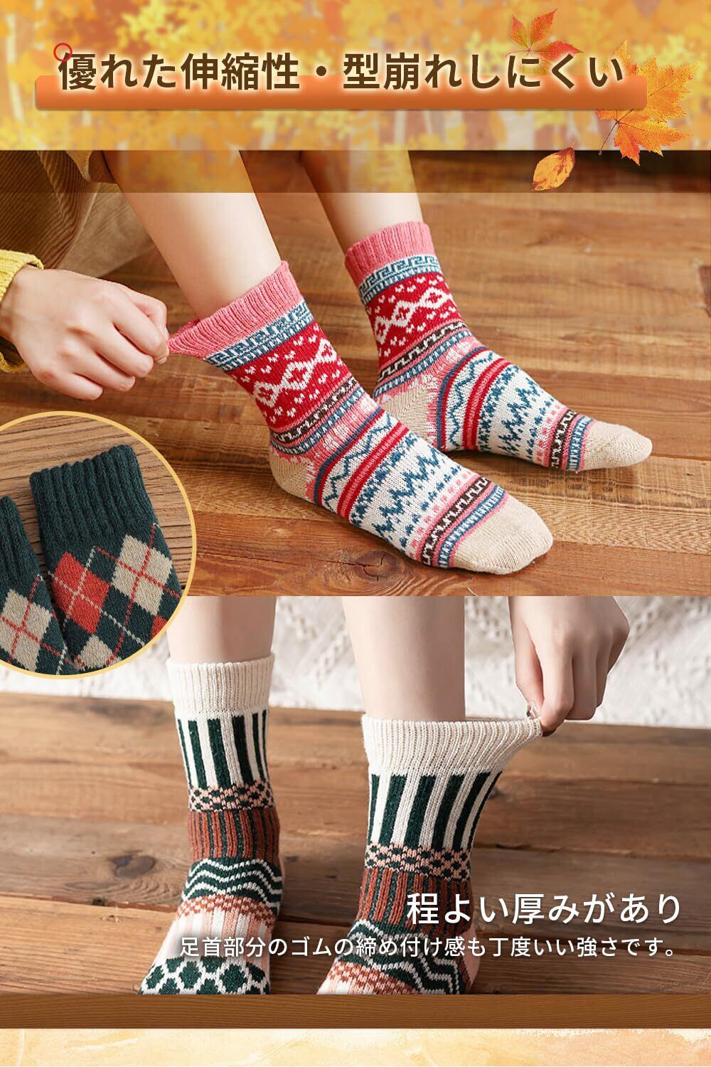 [WindTour] 靴下 レディース 冬 ソックス 秋冬 防寒 厚手 暖かい あったか 女性用 5足セット カラフル 通気 伸縮性 履き心地 可愛い おしゃれ 登山 スポーツ