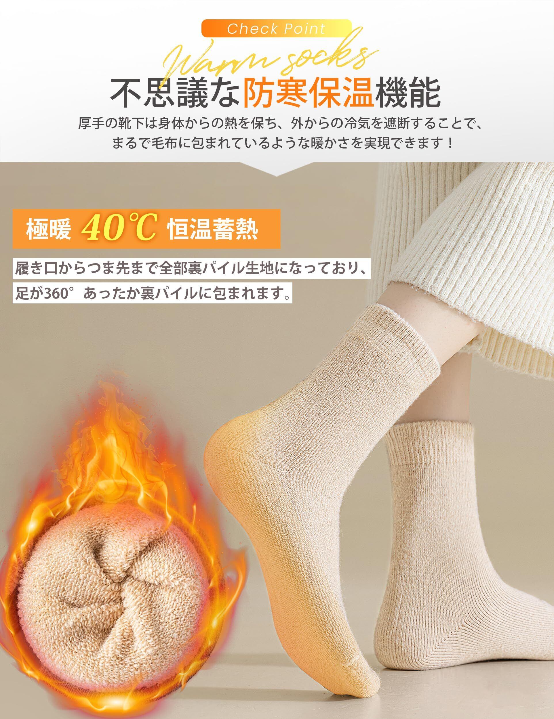 【2022最新】[SLEEPSINERO] 靴下 レディース あったか 極暖 厚手 冬【極暖40℃恒温蓄熱・不思議な防寒保温性】 暖かい ウール 抗菌消臭 吸湿 伸縮性 蒸れない 締め付けない 冷え取り 足冷え 防寒靴下 ソックス (5足セット)