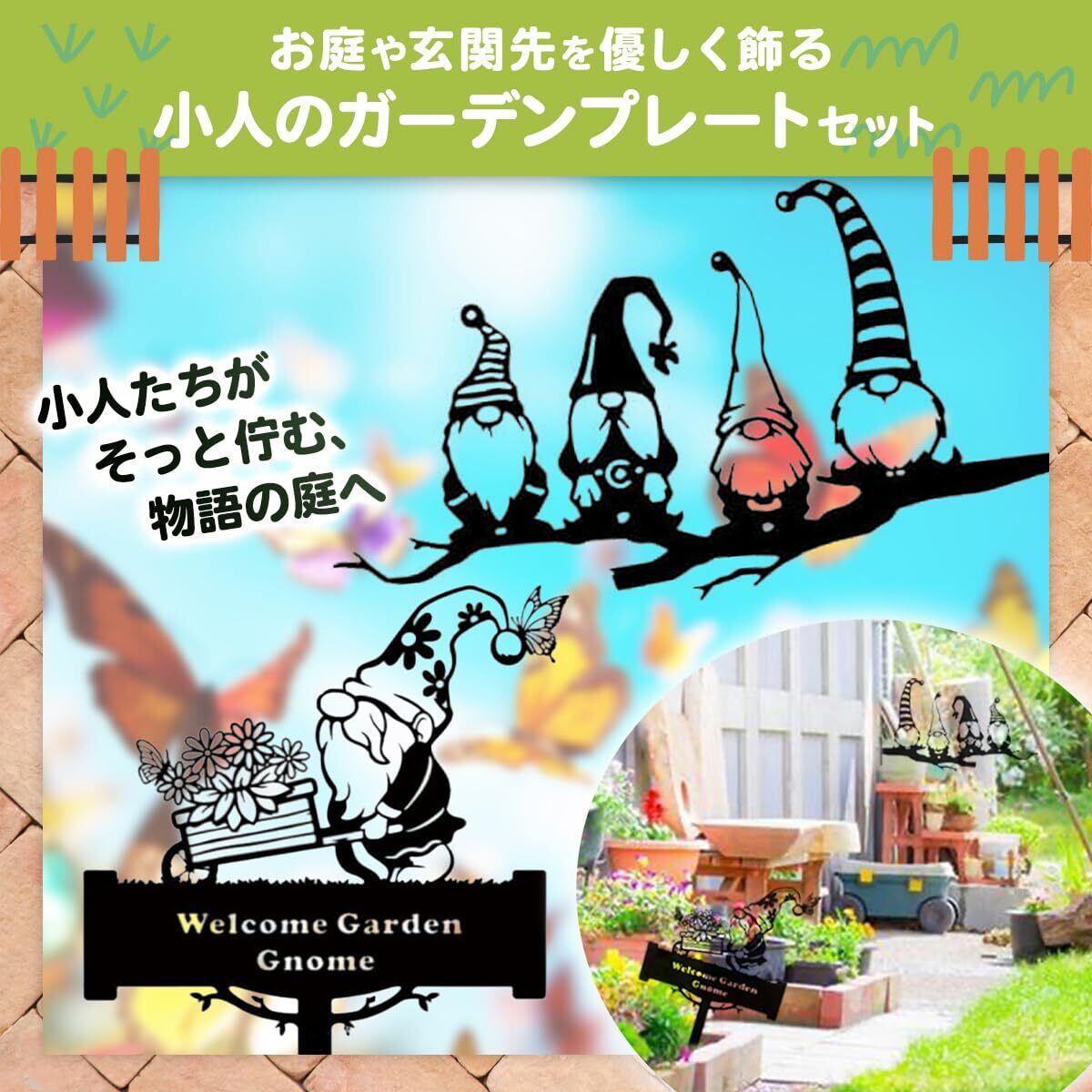 ガーデンプレートは、可愛い小人のガーデンオブジェ。庭、ガーデン、玄関のウェルカムプレートにも。土に埋設する縦埋めタイプと樹木に埋設する横埋めタイプの2個セット。北欧風、アンティーク、アート風のオシャレなデザイン。