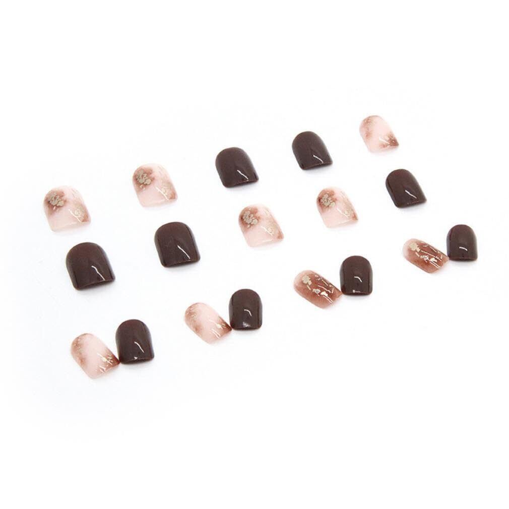 KOUMAKI ネイル チップ 3D爪 つけ爪 ショート ネイルシール ネイルチップ ラウンドチップ 和風 人気 成人式 入学式 卒業式 結婚式 パーティー 日常生活に使用できます 短め 両面テープ 花嫁ネイル 24枚入 (パターンブラウン)