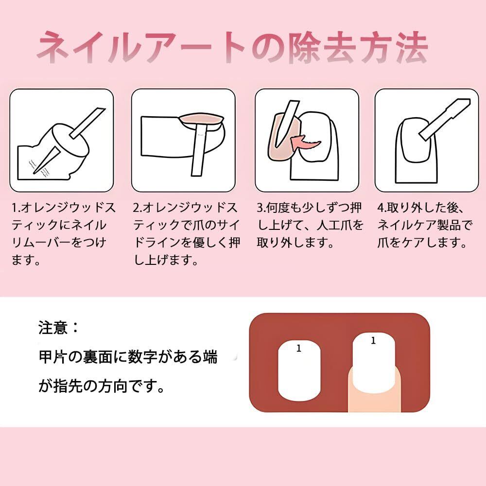 【リッチセット内容】この商品には24枚のセットが含まれており、予備用のネイルチップも一緒に提供されます。さらに、両面テープや爪やすり、木の棒もセットに含まれています。到着後すぐに使用できるので、お客様に便利です。さらに、両面テープに2秒間熱風をあてると、さらにしっかりと貼り付けることができます。