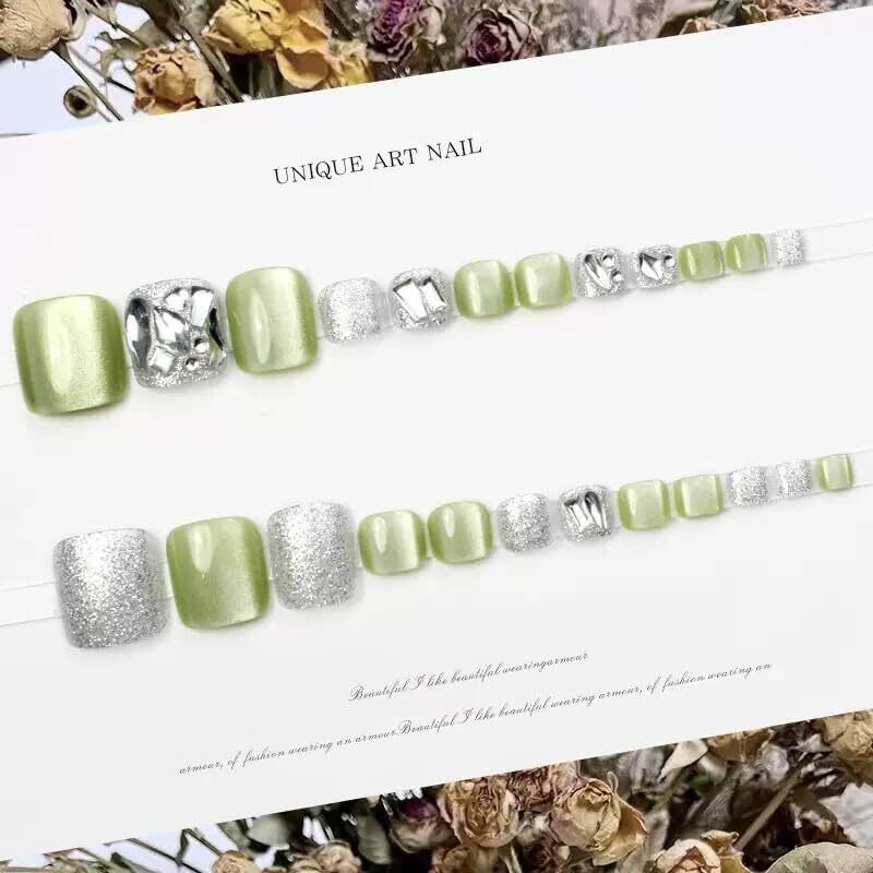 ネイルチップ 足 24枚入 ネイルチップ ショート 春夏 シンプル かわいい 人気 ネイルシール 花嫁ネイル 光沢 つけ爪 成人式 結婚式 入学式 卒業式 パーティー できます フット用(緑光の森-JZ177)