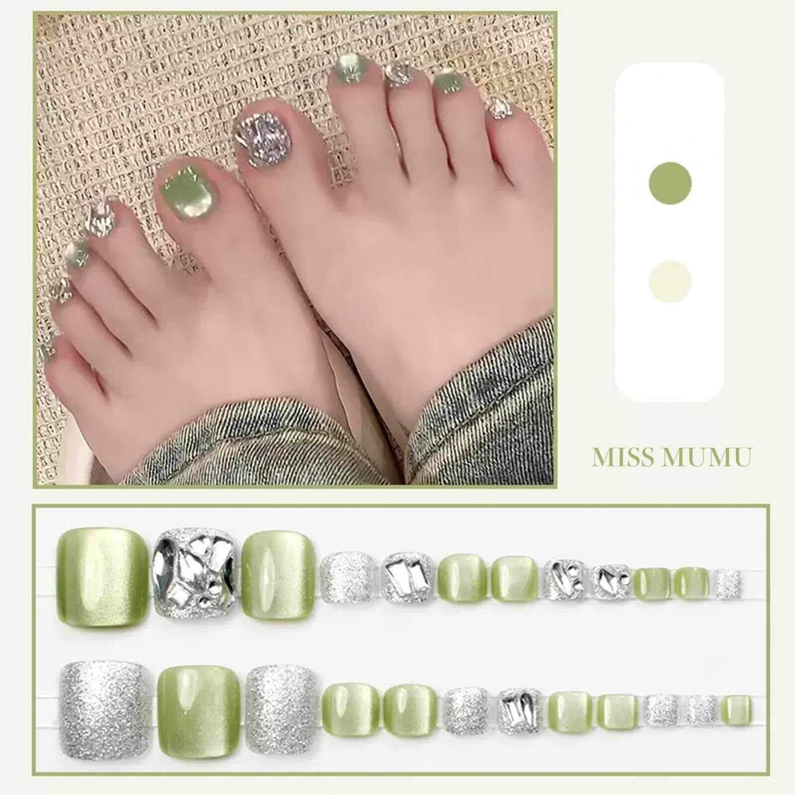 MISS MUMU ネイルチップ 足 24枚入 ネイルチップ ショート 春夏 シンプル かわいい 人気 ネイルシール 花嫁ネイル 光沢 つけ爪 成人式 結婚式 入学式 卒業式 パーティー できます フット用