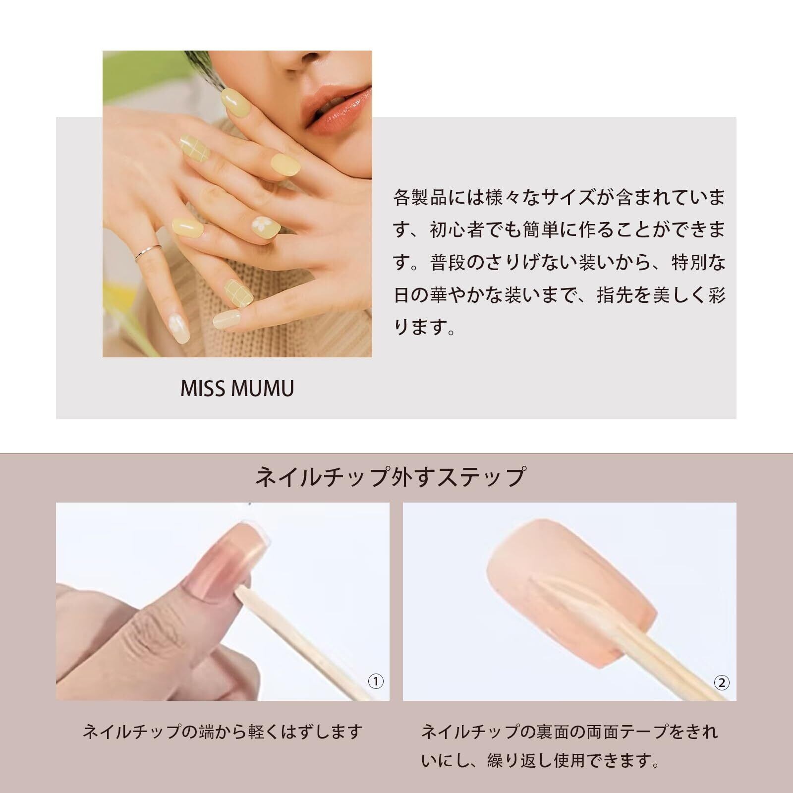 【ファッションデザイン】:MISS MUMUネイルはユニークなデザインで、さまざまなシーンにぴったり。パーティーや結婚式などの大切な場面で、あなたを一層際立たせます。