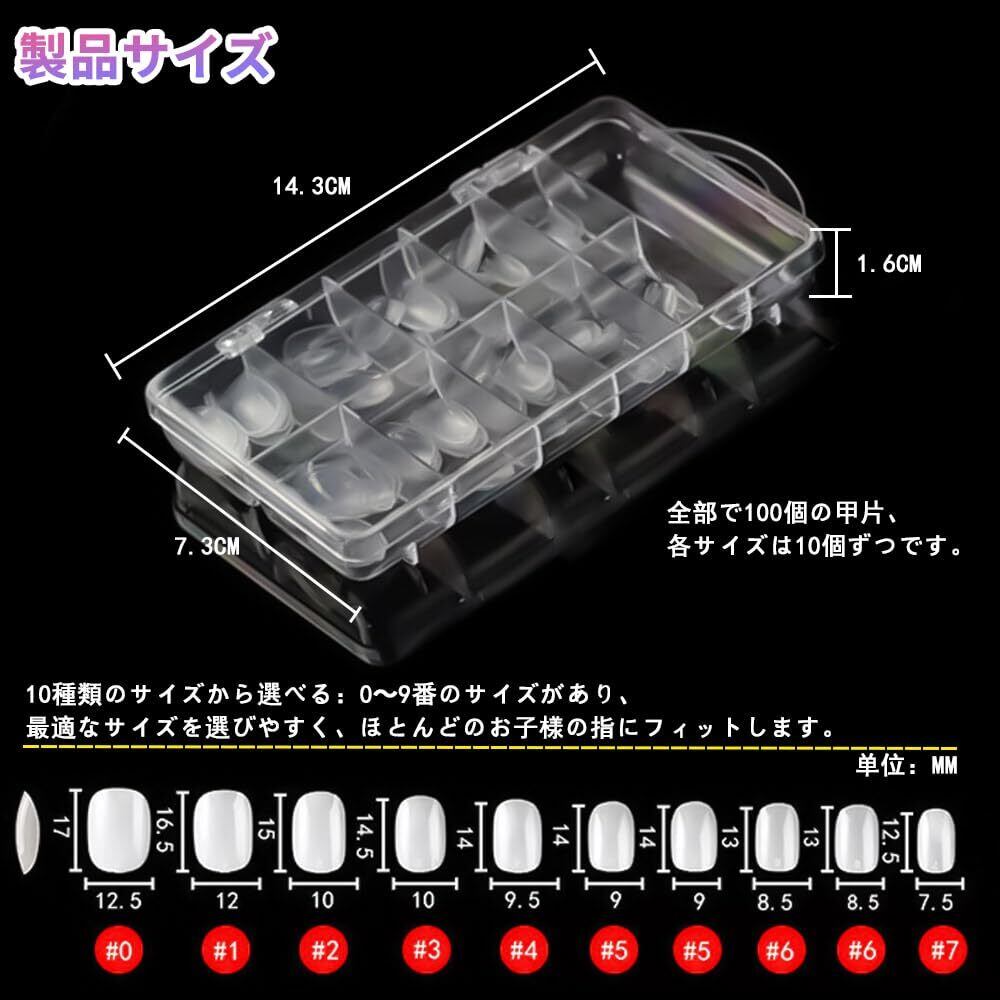 ネイルチップ 小さい 小学生 子供 100枚セット 10サイズ クリア クリア ネイル用品 DIY ショート 小さい爪用 つけ爪 女の子 人気