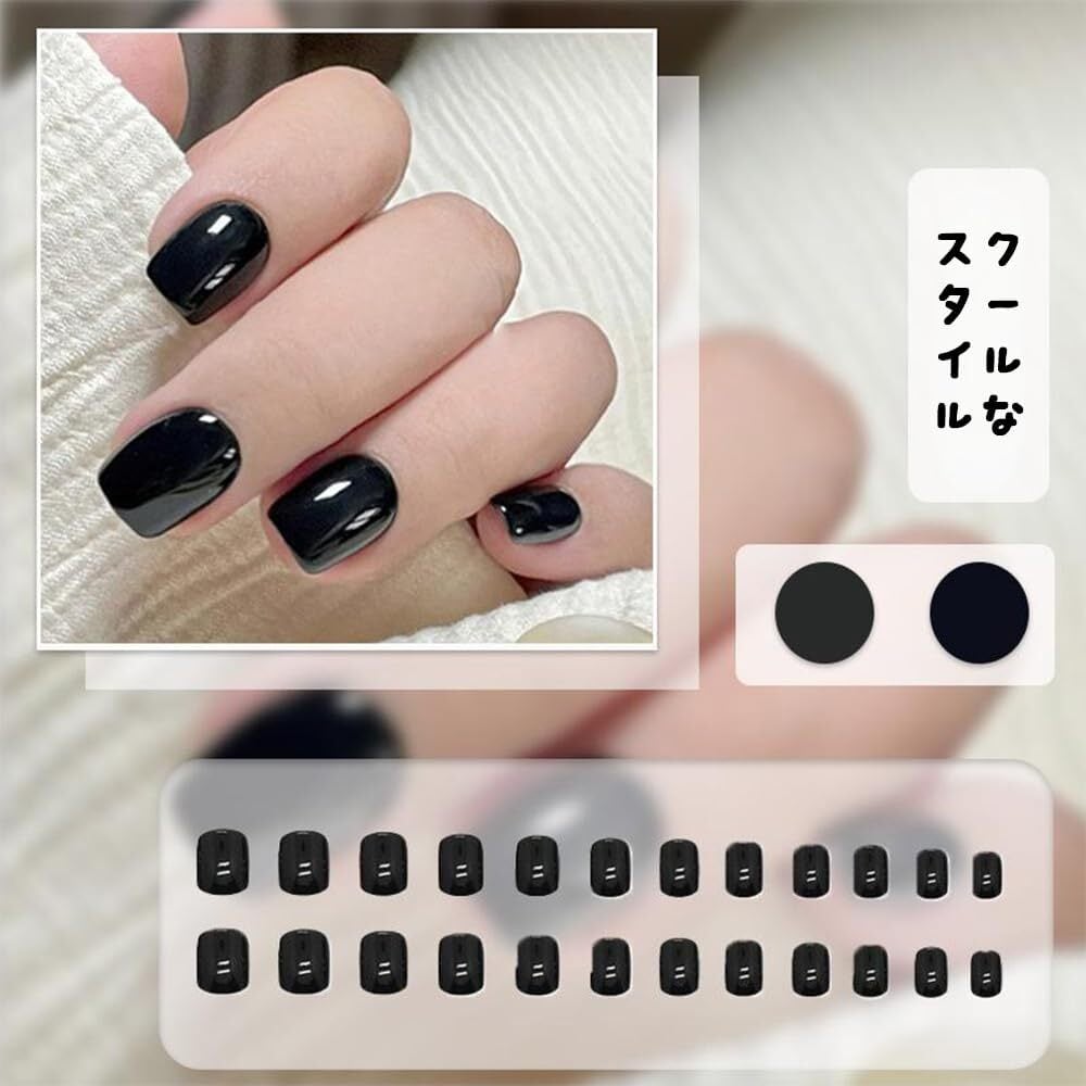 ネイルチップ 黒 つけ爪 24枚入 ショート 人気 和風 可愛い 甘くクールなスタイル 両面テープ付き かわいいつけ爪 おしゃれ 結婚式 成人式 入学式 卒業式 付け爪 チップ