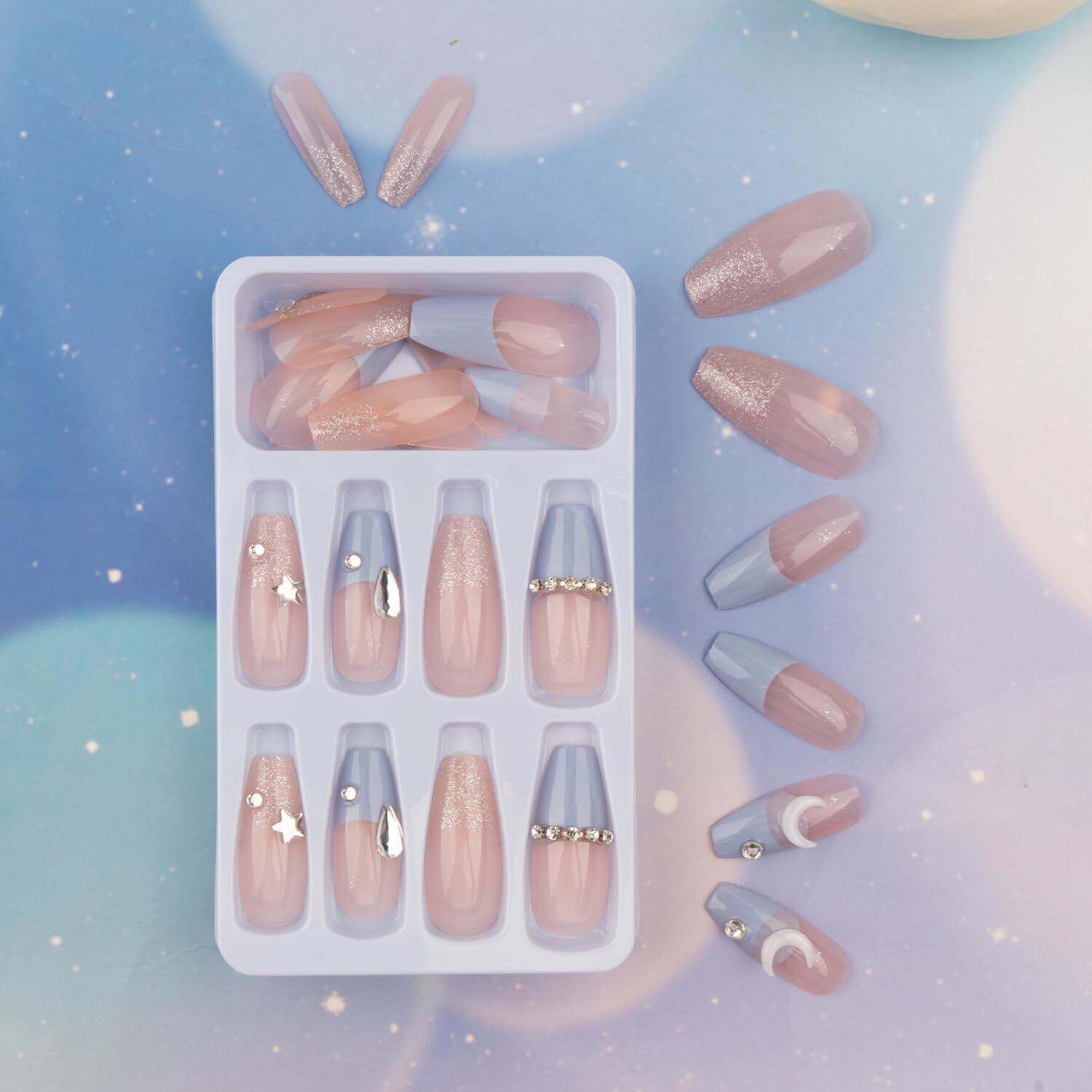 【使い方】手を清潔にし、汚れや水分を落とした後、両面テープを爪に貼り付け、しばらく押さえればネイルサロンのような爪になります。注意:着用後最初の1時間は水を使わないようにします。彼女や妻、友人への素敵なプレゼントです。
