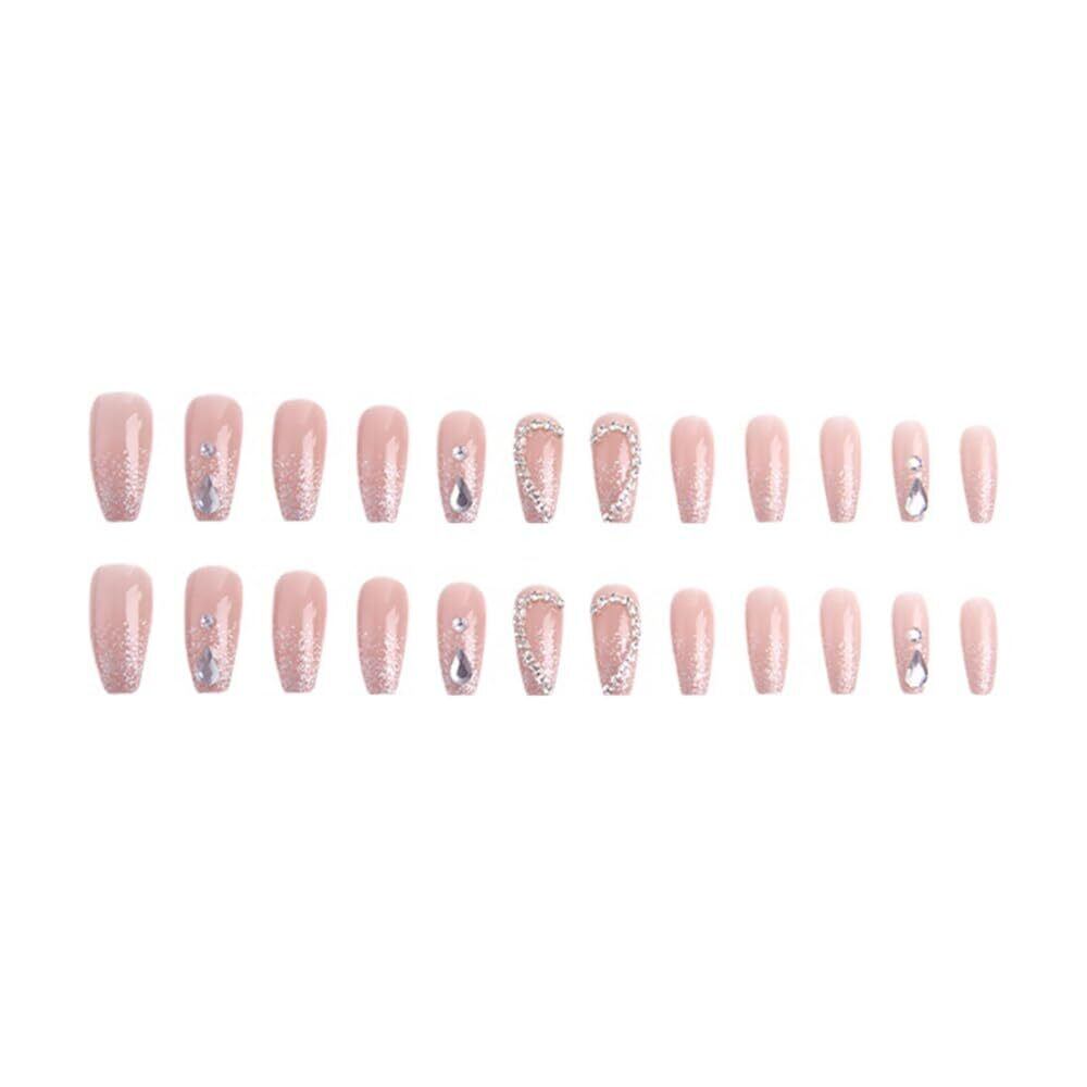 【在庫処分】ネイルチップ ロング 付け爪 24枚入立体 韓国 人気 おしゃれ ジェルネイル ネイルシール 可愛い 長め ネイルチップ 花嫁ネイル セルフネイル キラキラ 光沢 両面テープ 蝶 3Dリボン 付け爪 結婚式 成人式 入学式 卒業式 パーティー 女性 プレゼント 繰り返し使える (キラキラハートとストーン, Free size)