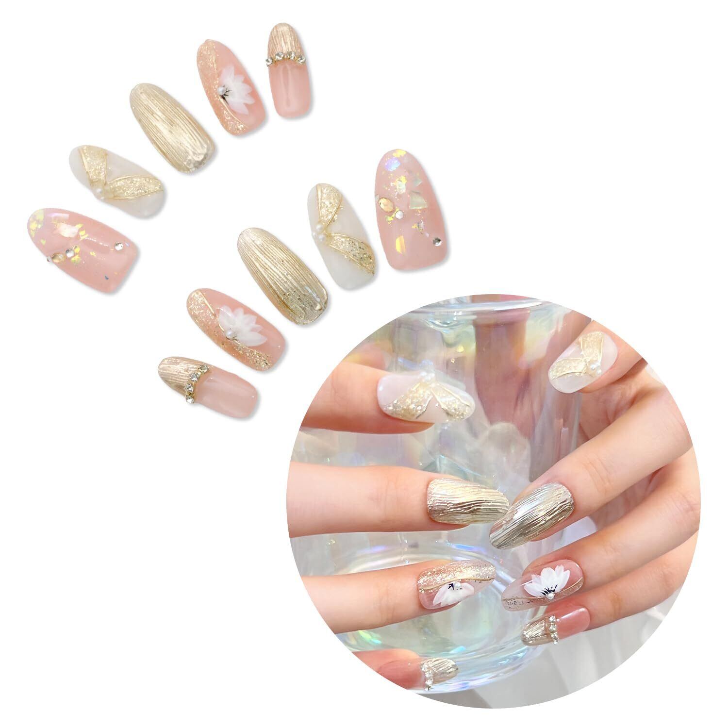 SoraraBeauty ネイルチップ 100%ハンドメイド 貼るだけネイル ジェルネイル ネイルシール セルフネイル ネイルステッカー おうちネイル ネイルデザイン セルフネイル (O01, M)