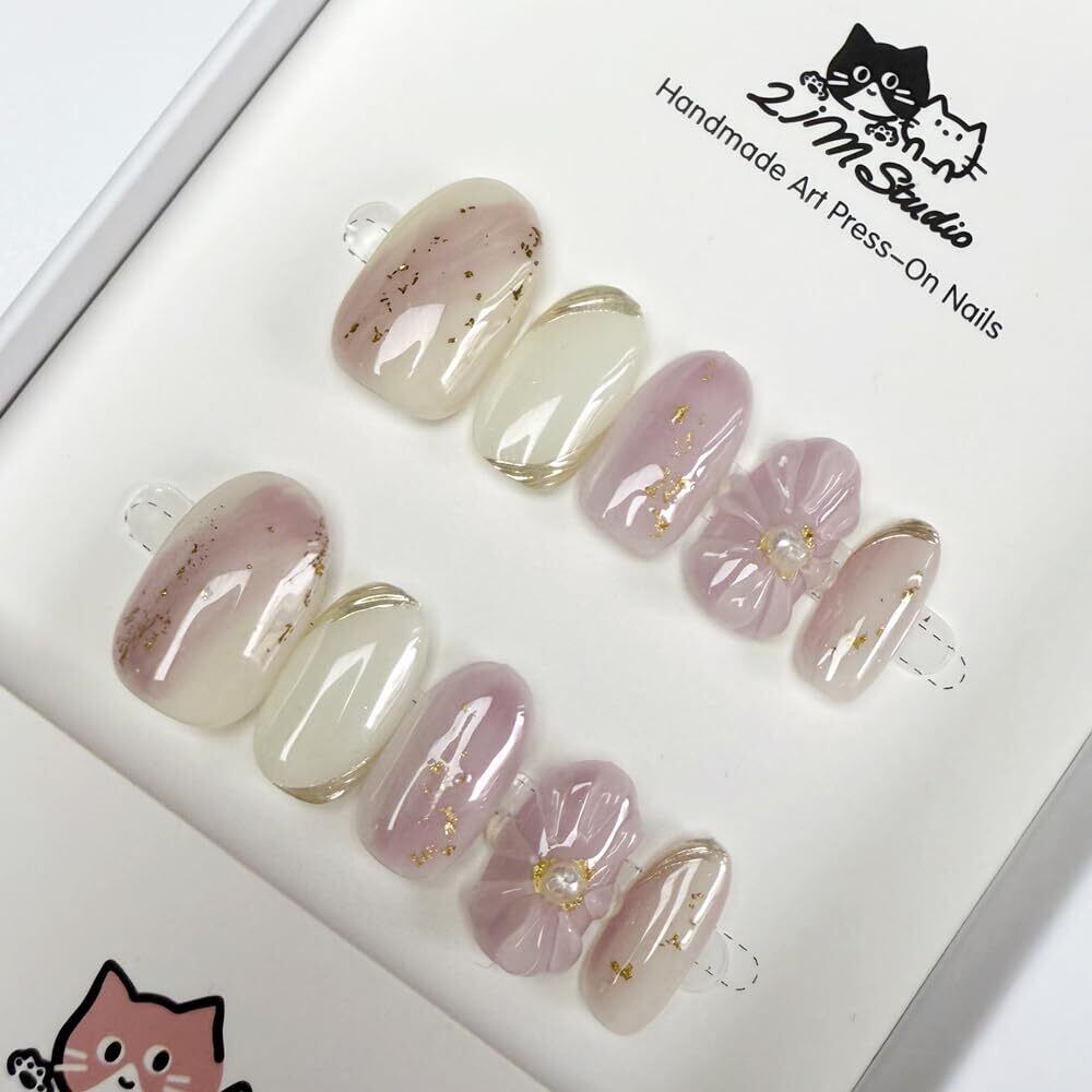 ネイルチップ 10枚入 職人仕上げ 和風ミニマルデザイン 上品シンプル フラワーアート 桜 花びら 手作りサロン級 フォトウェディング 結婚式 成人式 オフィスネイル 卒業写真 デート ショッピング パーティー 高級レストラン 両面テープ・木棒・爪やすり付き 人気つけ爪 (紫の霞桜, S)