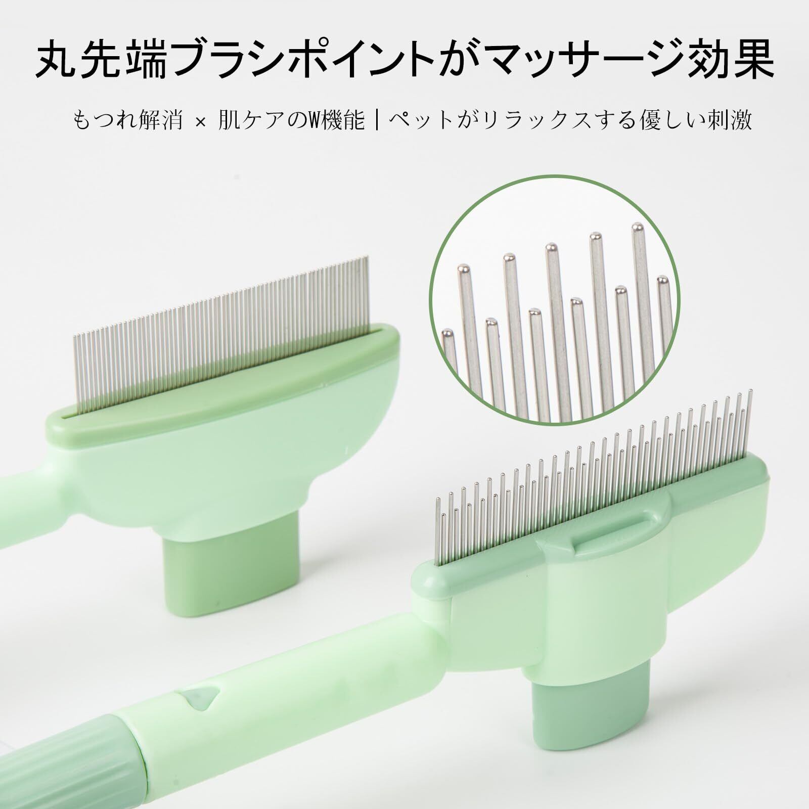 猫犬用コーム くし 櫛 ブラシ 毛のワンタッチ除去ボタン 密歯&長短歯2点セット 長毛・短毛対応 痛くないやさしい設計