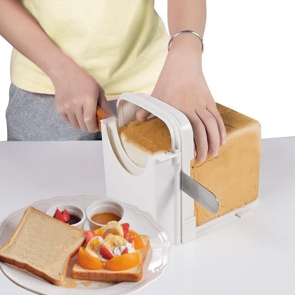 【在庫処分】食パンスライサー 折り畳み式パンスライサー 使いやすい 厚さ自由調整 省スペース 洗える 朝食パン作りに最適 パン切りガイド