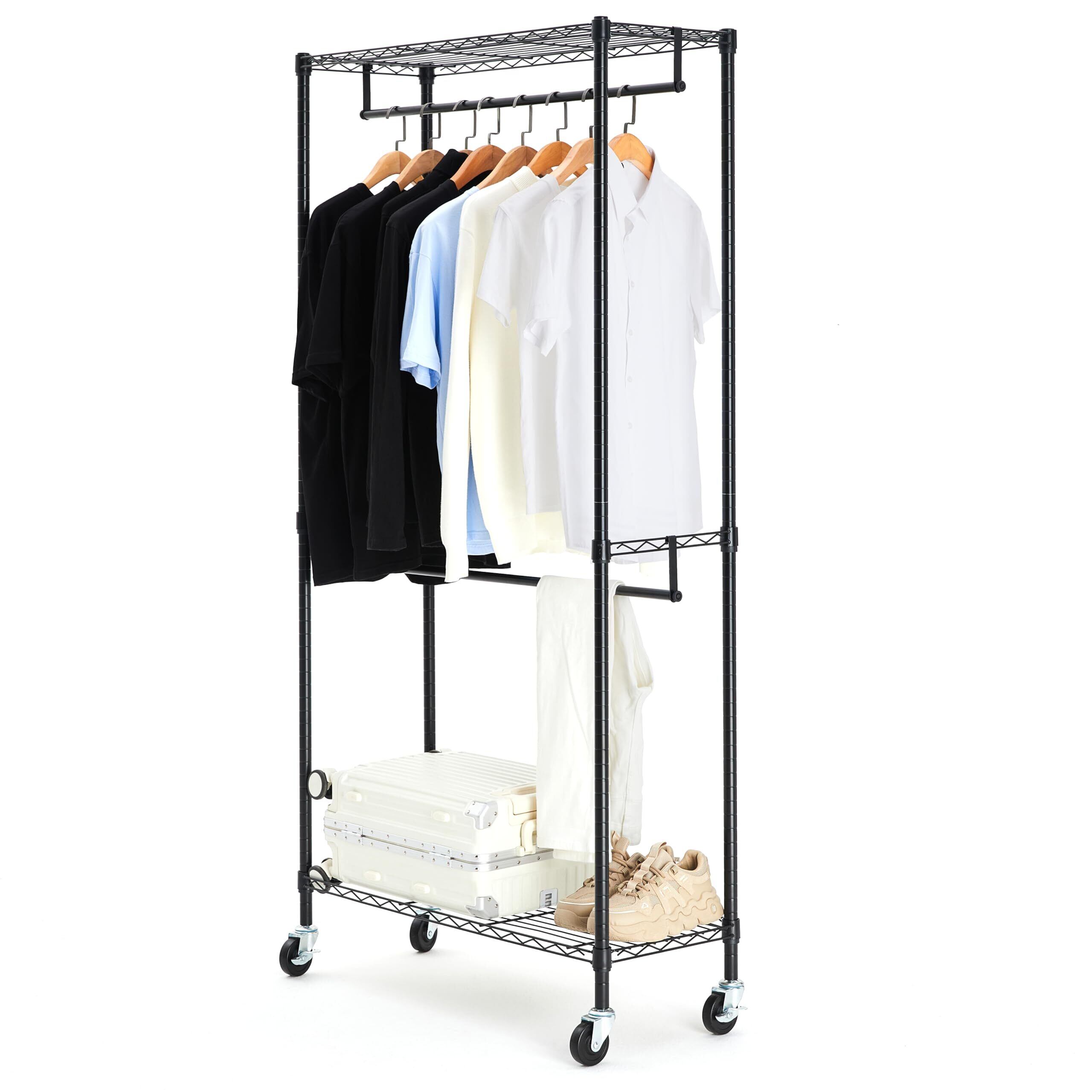 ベーシック ハンガーラック 2段 洋服ラック 耐荷重181kg 頑丈 キャスター付き 棚付き 耐荷重181kg, 幅91.4 x 奥行35.6 x 高さ182.9 cm, ブラック