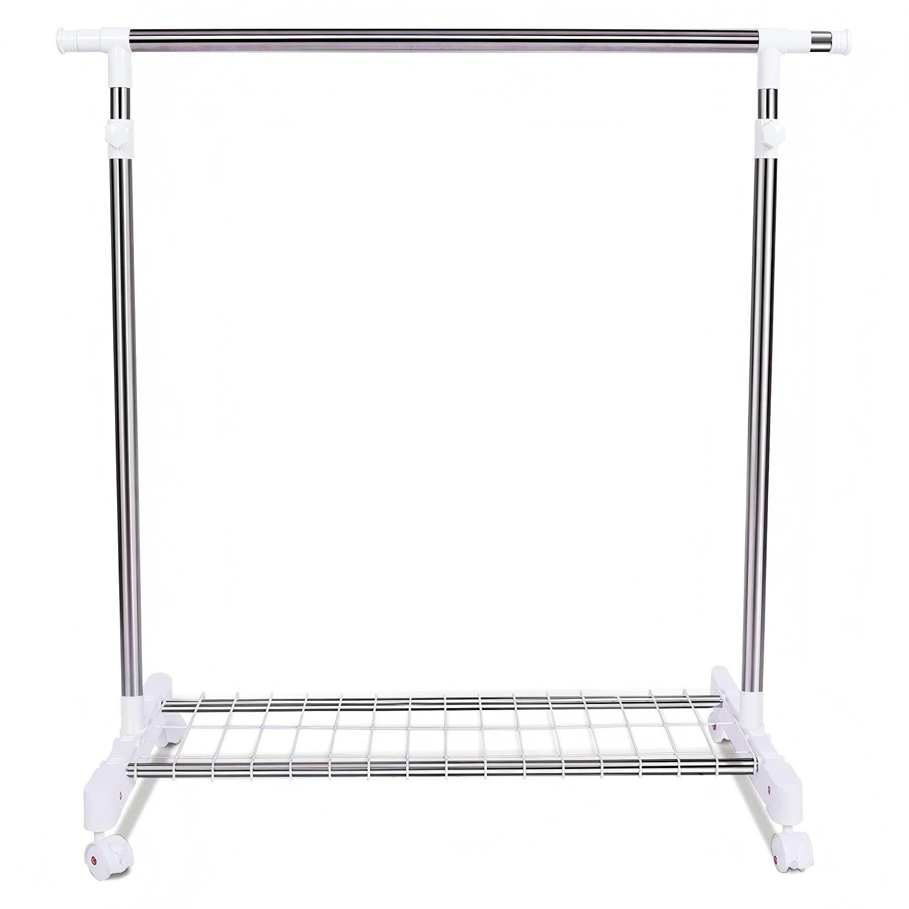 【新着商品】パイプハンガーラック シングル 直径26.5mm 幅90~155×奥行43×高さ90~160cm 高さ調節 縦横伸縮 キャスター ネット付き 耐荷重40kg