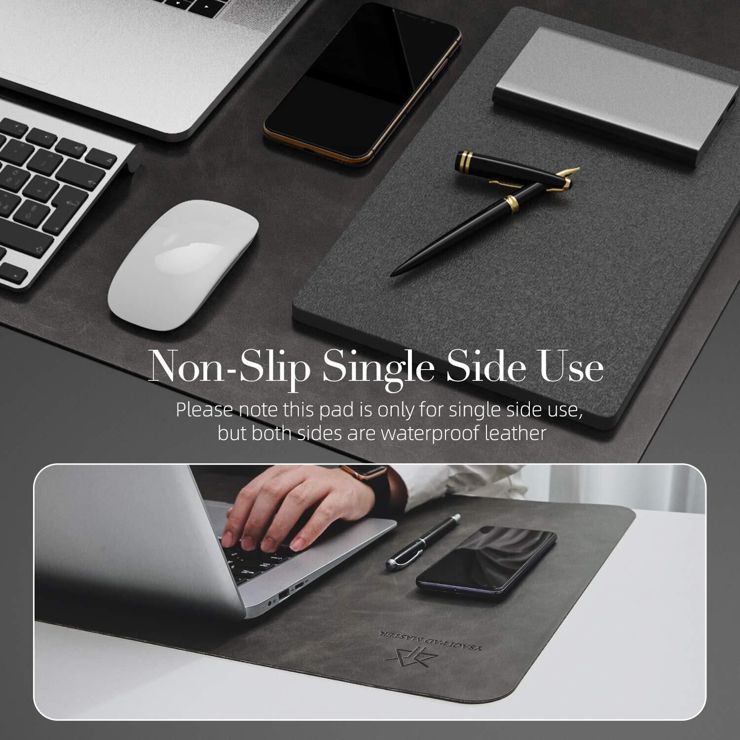 YSAGi デスクマット レザーデスクパッド 大型マウスパッド 両面レザー 超防滑設計 防水 防油 断熱 お手入れ簡単 オフィス 自宅用 装飾用 大型デスクパッド (グレー, 90*43cm)