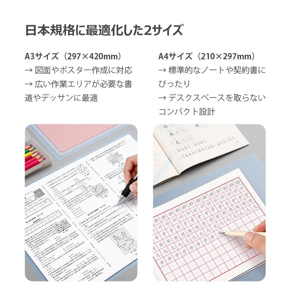 5. 日本規格のダブルサイズ ・A4(210×297mm):契約書/テスト用紙に最適 ・A3(297×420mm):図面/ポスター制作対応 ✓ 机のサイズに合わせて縦横両用で設置可能