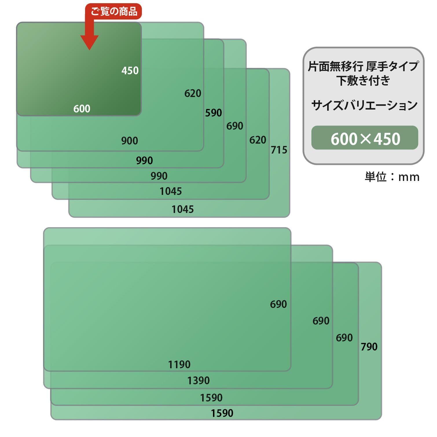 【在庫セール】プラス デスクマット 下敷付 サイズ 多数 光沢 インクが移りにくい 2.5mm厚 厚手 600×450mm 透明+グリーン DM-010CW 40-992