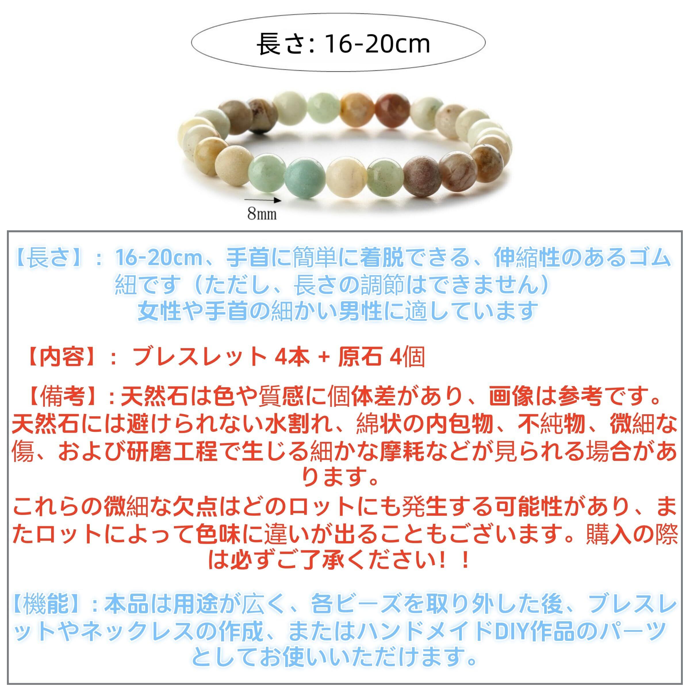【5. 高品質な仕上げと贈り物に最適】 各ブレスレットは丁寧に加工され、上品な輝きを放ちます。4本セットでお得に、自分用や友人・家族への贈り物としても喜ばれます。
