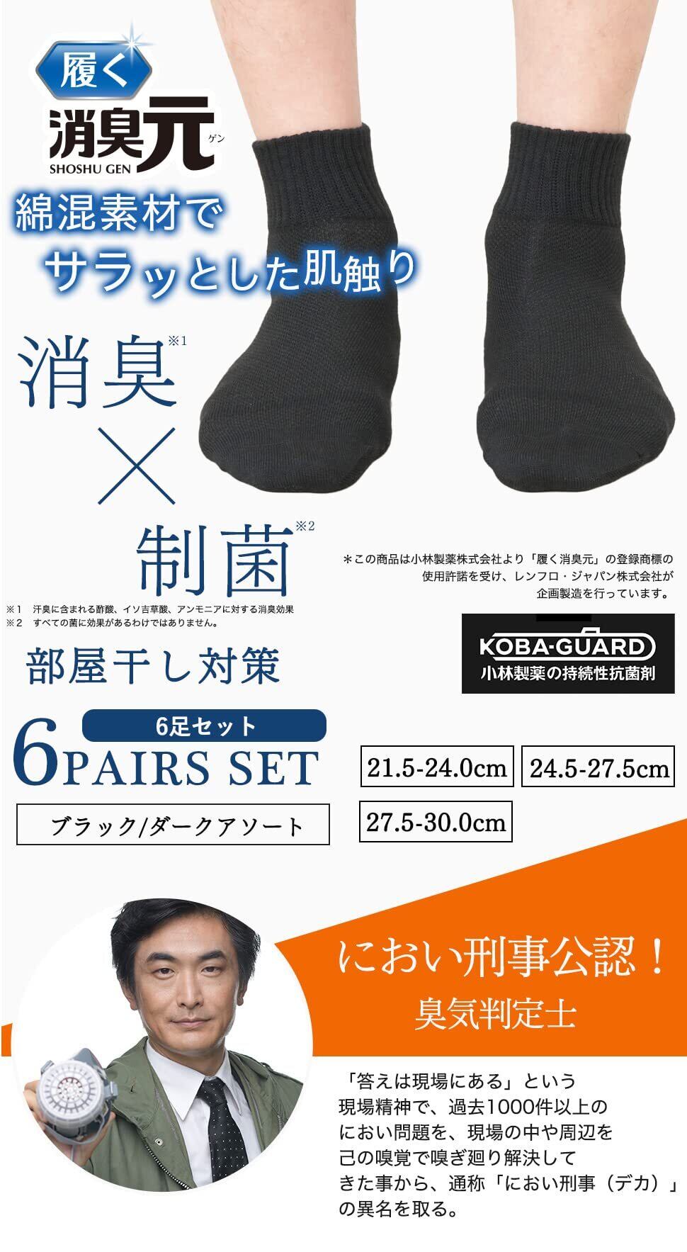 履く消臭元 靴下 ビジネス 抗菌防臭 消臭21.5-24cm 24.5-27cm 27.5-30cm 6足セットメンズ