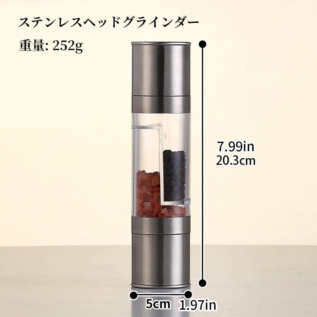 ペッパーミル 手動 2in1 胡椒 ミル 岩塩 ソルトミル ステンレス製 粗さ挽き調節可能 セラミック刃 スパイスミル 操作簡単 収納便利 調味料用 キッチン用品