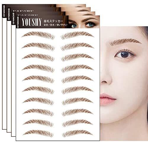 つけ眉毛タトゥーシール 眉 眉毛 アートメーク メイクシール 眉毛 ステッカー【40ペア】たとぅー 4d6dナチュラルまゆげ 貼る眉毛 アイブロウ 消えない 防水 持続的落ちな眉墨 化粧品シール(BROWN03+BLACK03)