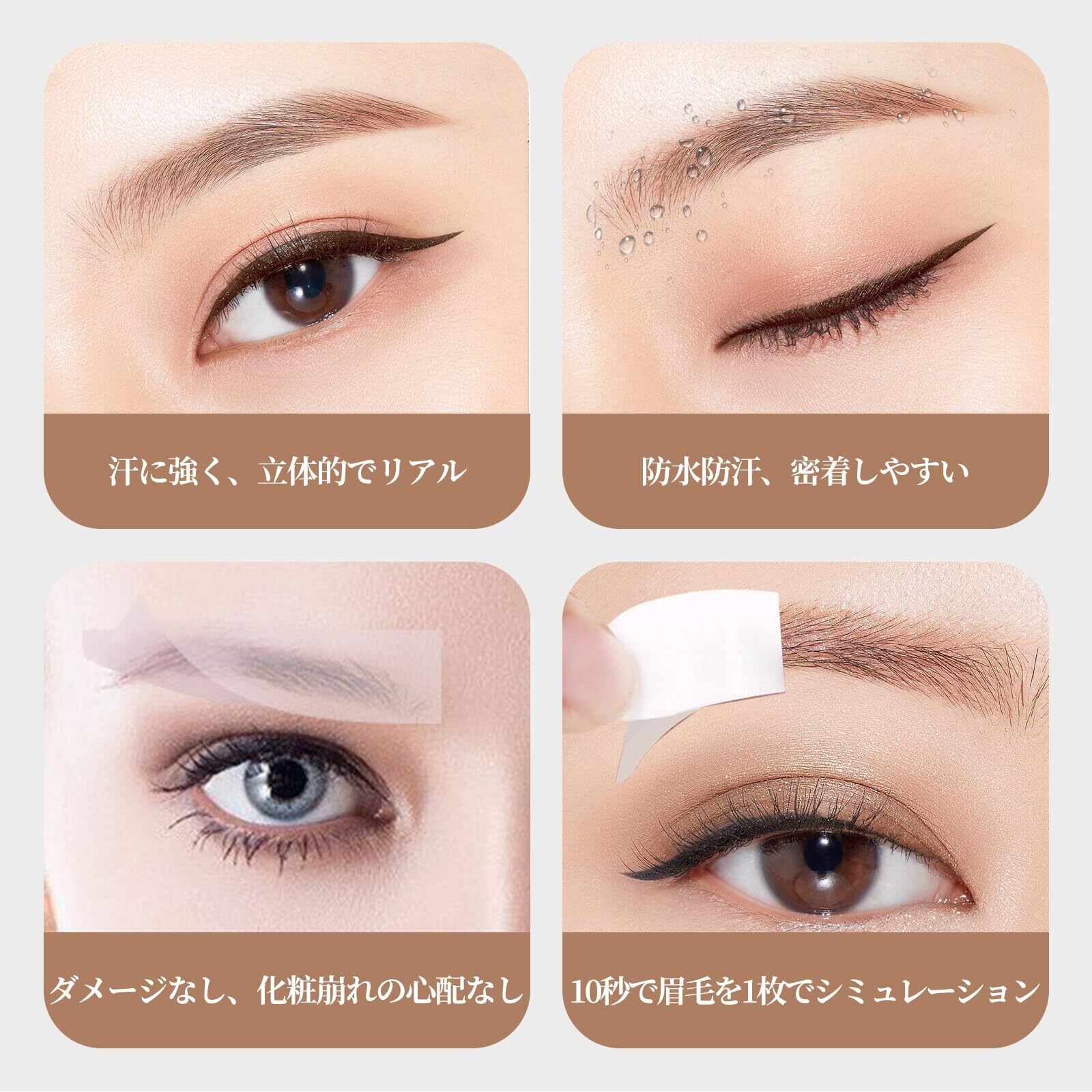 【使いやすく】6d眉シールは水で湿らせて眉に塗るだけです。10秒待って,希望の眉の外観を完成させます,眉 アート メイク,眉毛のスタイルやサイズは日本人にふさわしく,6dナチュラル眉シールは髪の毛のようなタッチで,信じられないほどリアルなディテールで。