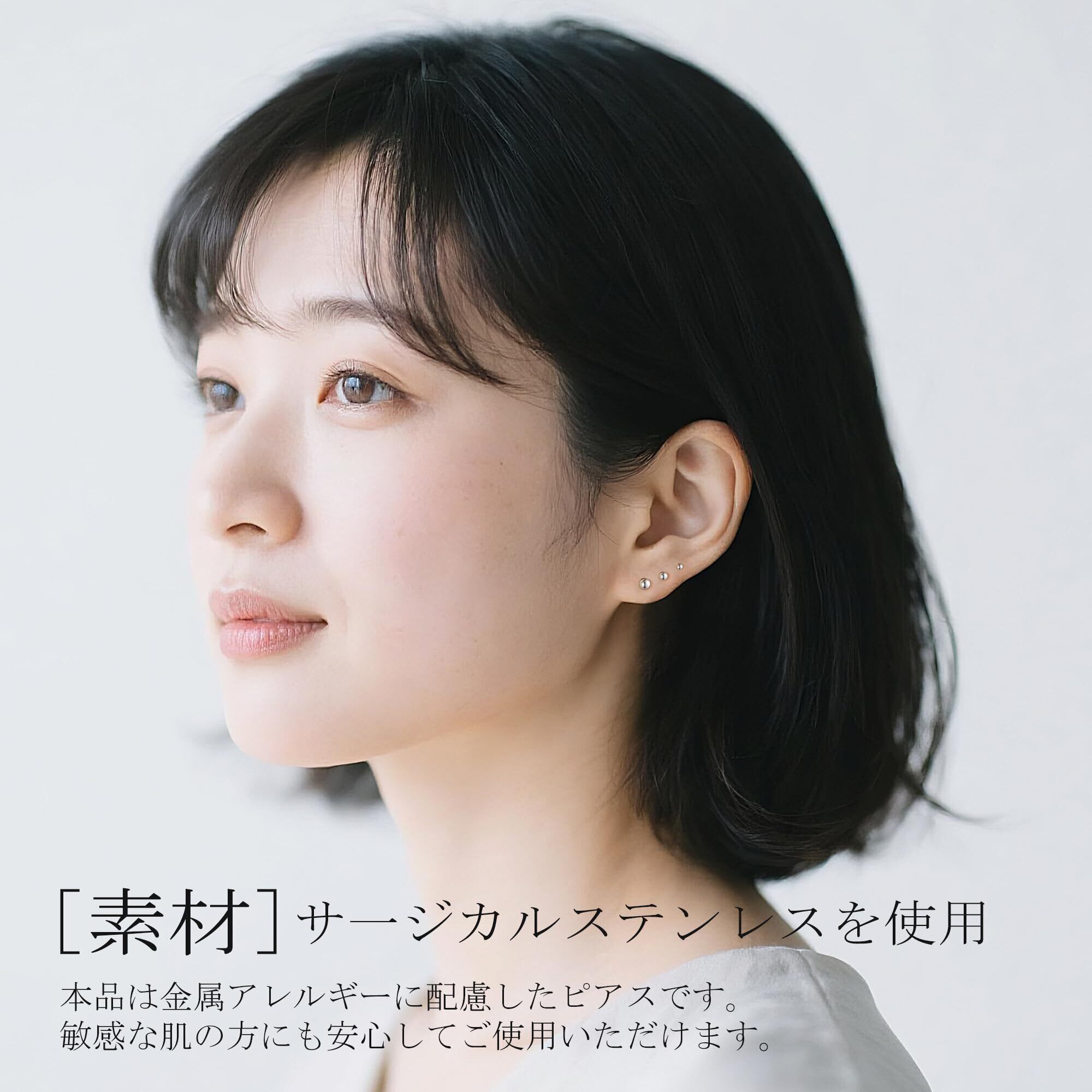 【金属アレルギー対応】ピアスの材料はステンレス鋼を使用されています。アレルギー金属が含まれていないため、アレルギーの方でも安心してご使用頂けます。また、錆や傷に強いため、長くご愛用頂けます。