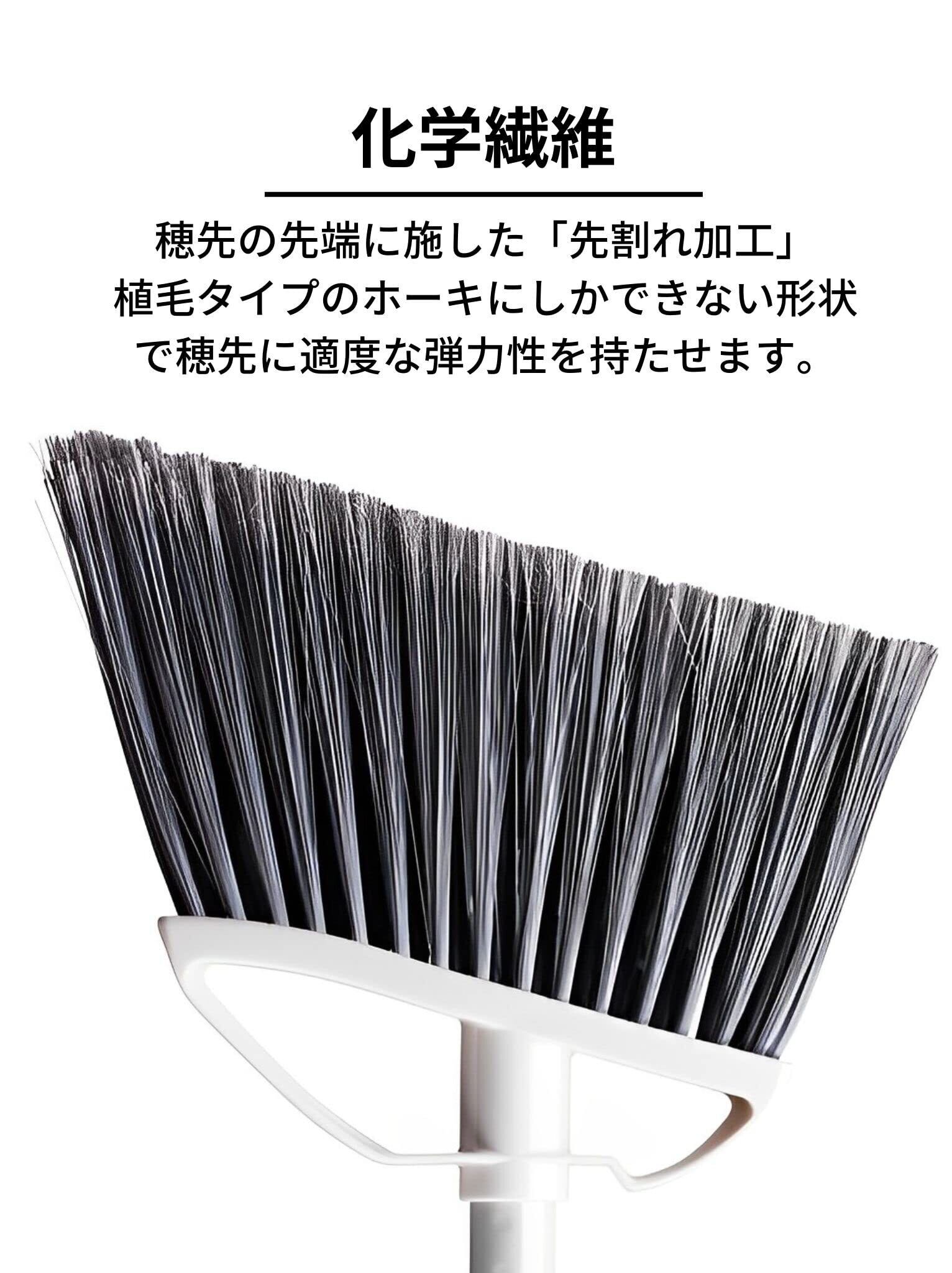 【特徴】穂先の先端に施した“先割れ加工”により細かいゴミやほこりを残さずキャッチ。象徴的なヘッド部は、植毛タイプのホーキにしかできない形状で穂先に適度な弾力性を持たせます。チリトリはホーキにぴったりセットでき、すっきりと収納できます。