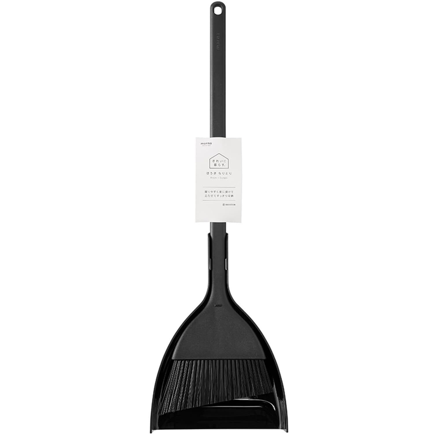 マーナ (marna) ほうき ちりとり セット (自立式/スリムでコンパクトに収納) 箒 塵取り (室内/屋外/ベランダ 玄関 掃除) ブラック R452BK