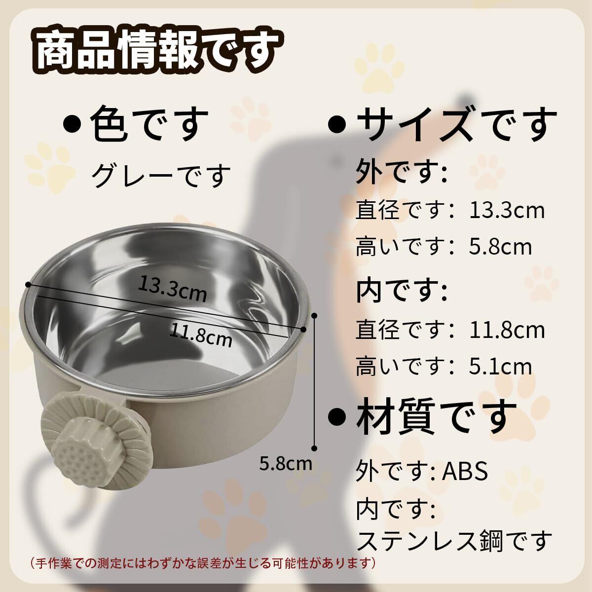 ペットぶら下げボウル ペットボウル ハンガー ゲージ用 ペット食器 餌入れ 固定 猫 犬 うさぎ 小動物用 食器 (グレー, M)
