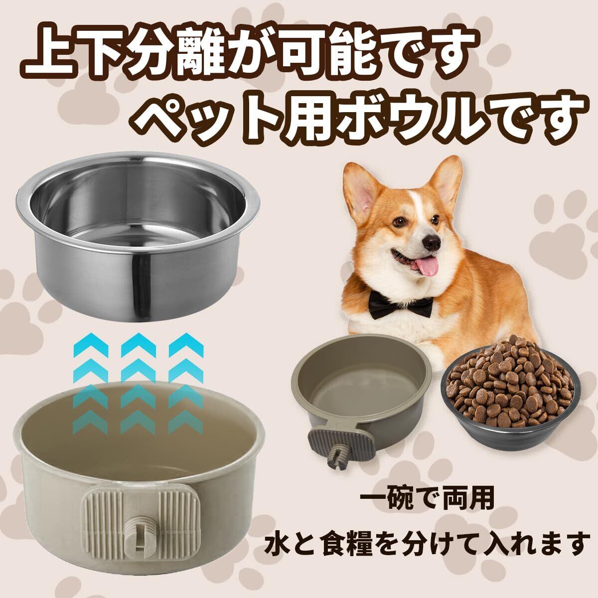 【新春セール】ペットぶら下げボウル ペットボウル ハンガー ゲージ用 ペット食器 餌入れ 固定 猫 犬 うさぎ 小動物用 食器 (グレー, M)