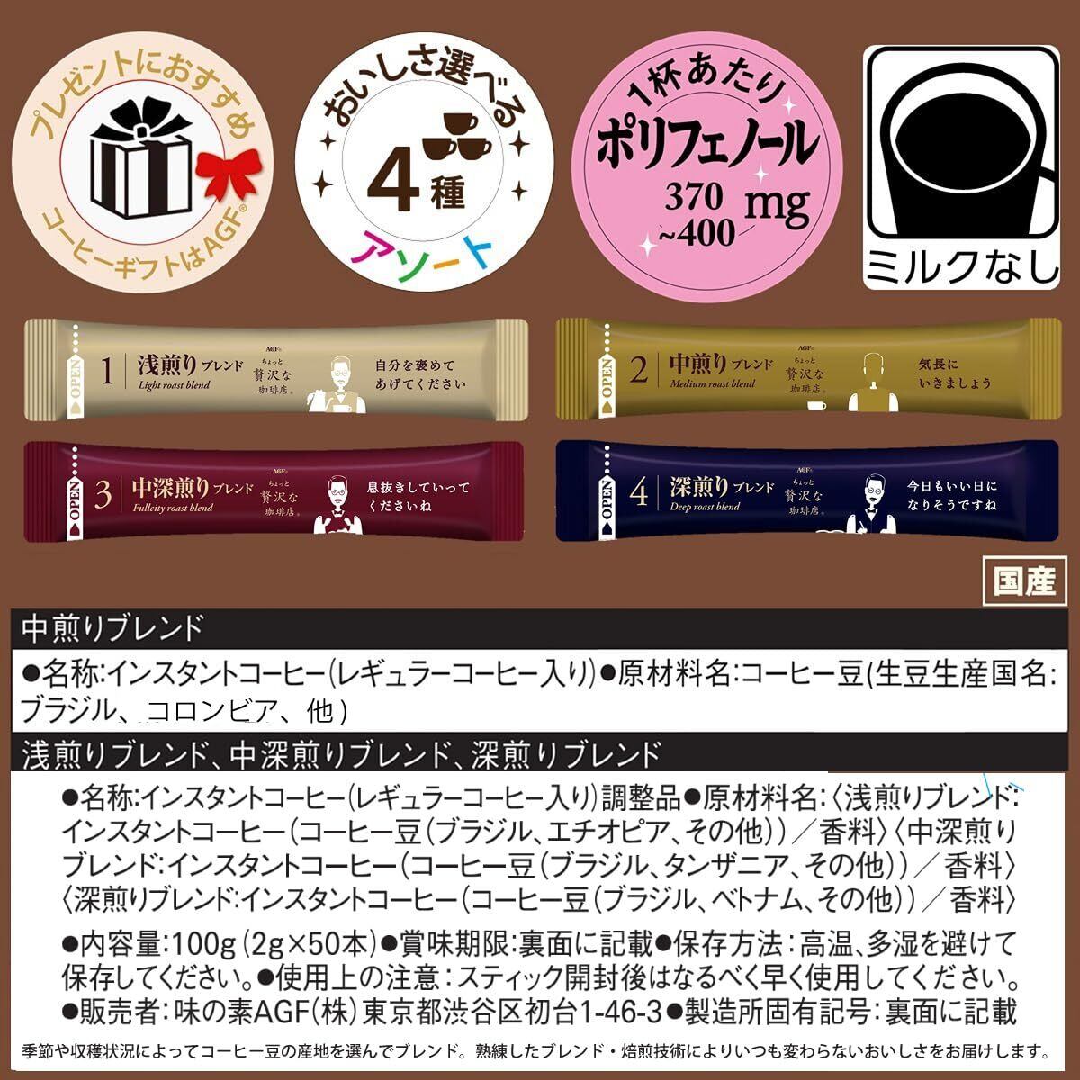 【特価セール】AGF(エージーエフ) ちょっと贅沢な珈琲店 ブラックインボックス スティックブラック 焙煎アソート 【中煎りブレンド、深煎りブレンド各15本、浅煎りブレンド、中深煎りブレンド各10本】 50個 (x 1)