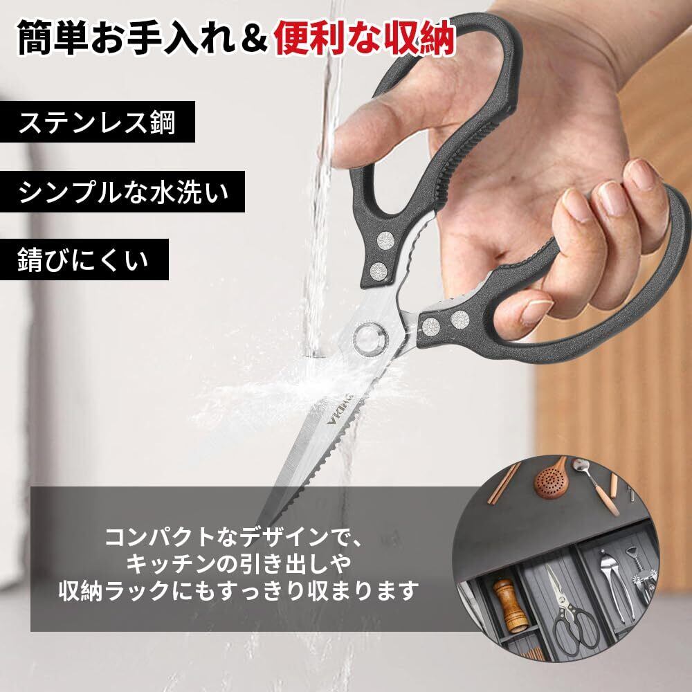 【数量限定】VKING 料理バサミ 多機能ハサミ キッチンバサミ - ボトルオープナー ナッツクラッカー 野菜 肉 鱼 鶏肉 家禽 魚の骨 焼肉カット ハサミ 調理はさみ 万能ハサミ ステンレス鋼 錆びにくい (ブラック)
