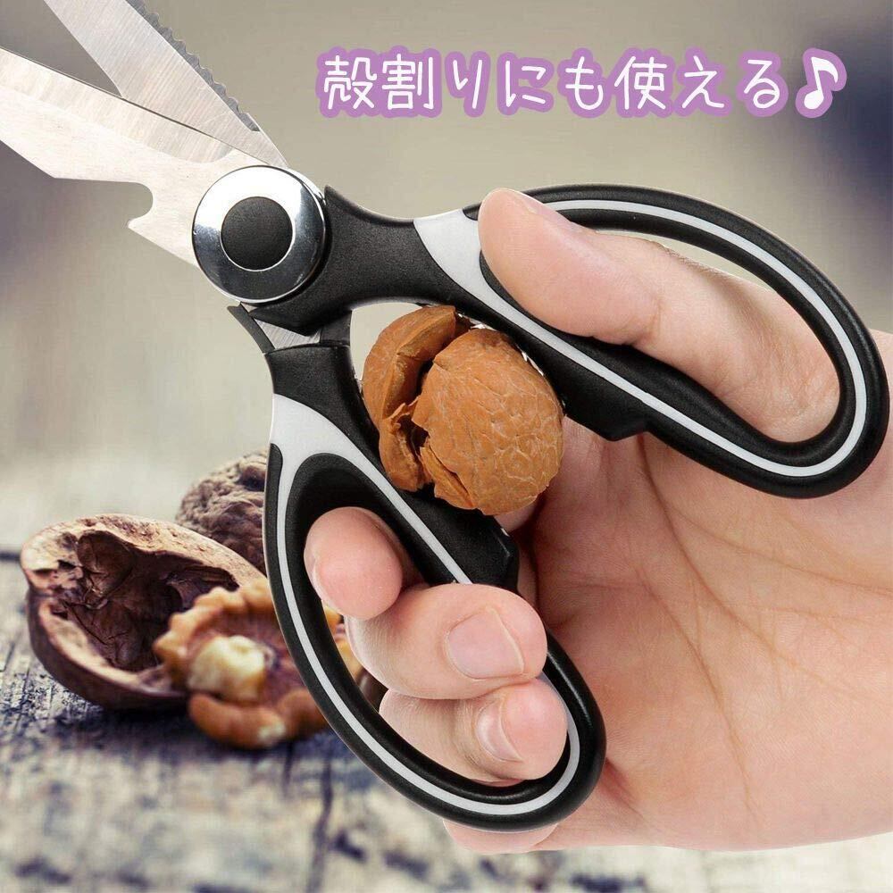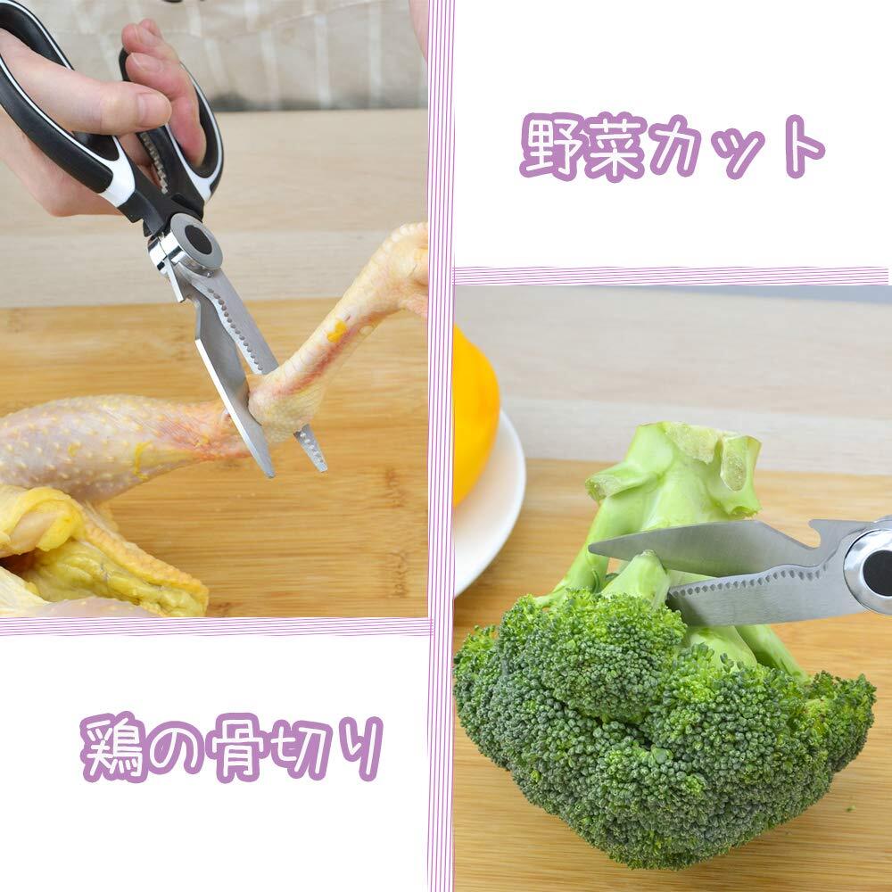 【キッチンバサミ│多機能】料理ばさみは肉切り、鶏の骨切り、栓抜き、ネギの細切り、硬い骨に挟まれ、くるみ、蓋開けなどの場合が対応できます。