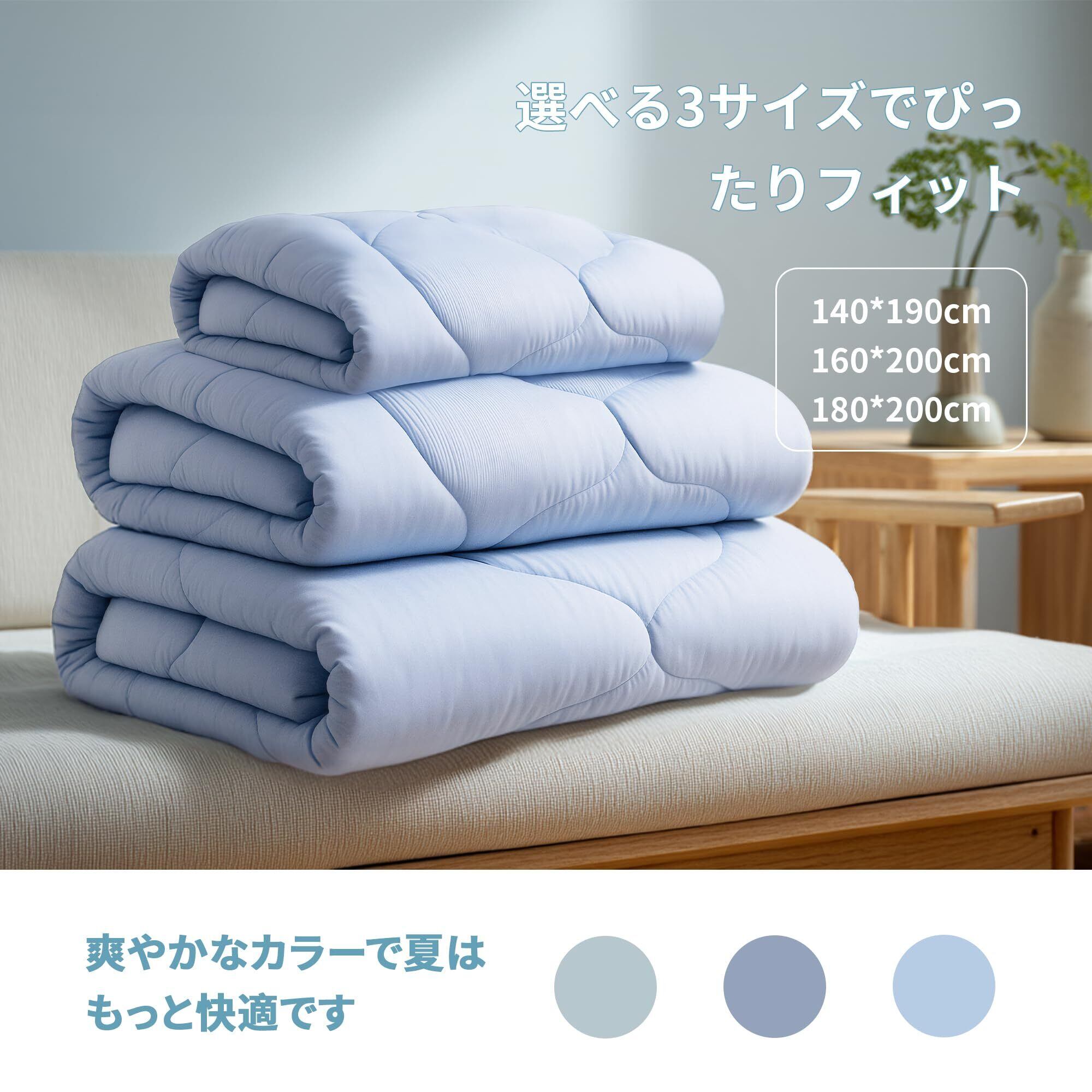 【抗菌・低刺激加工で、家族みんなが安心】Deconovoの夏用掛け布団は、抗菌・防臭加工済み。アレルギーや敏感肌を持つお子様や高齢者、そしてペットと暮らす家庭でも、清潔さと安心感を提供します。