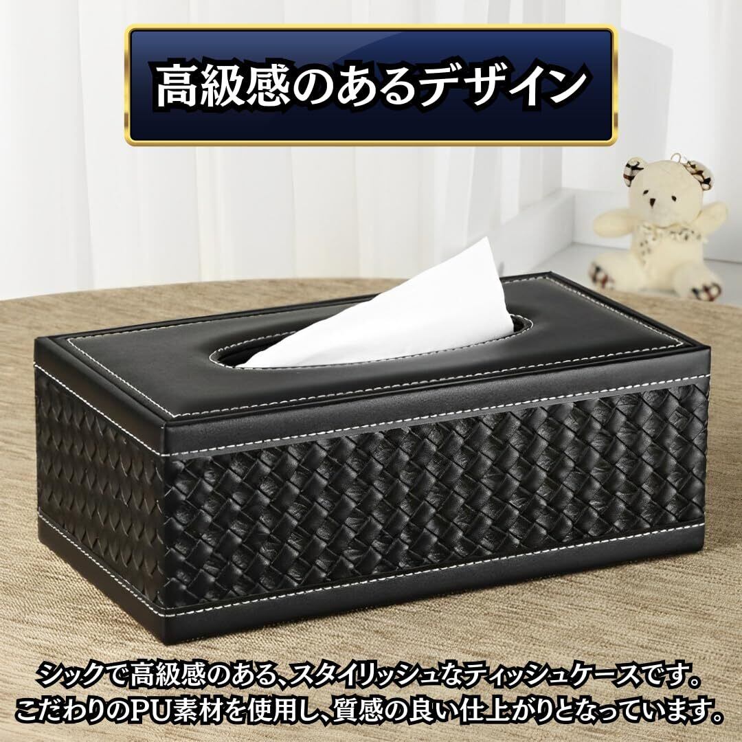 【スタイリッシュなデザイン】室内や車内など様々な場面にマッチする、シックで高級感のあるデザインのティッシュケースです。こだわりのPUレザー素材を使用し、質感の良い仕上がりとなっております。