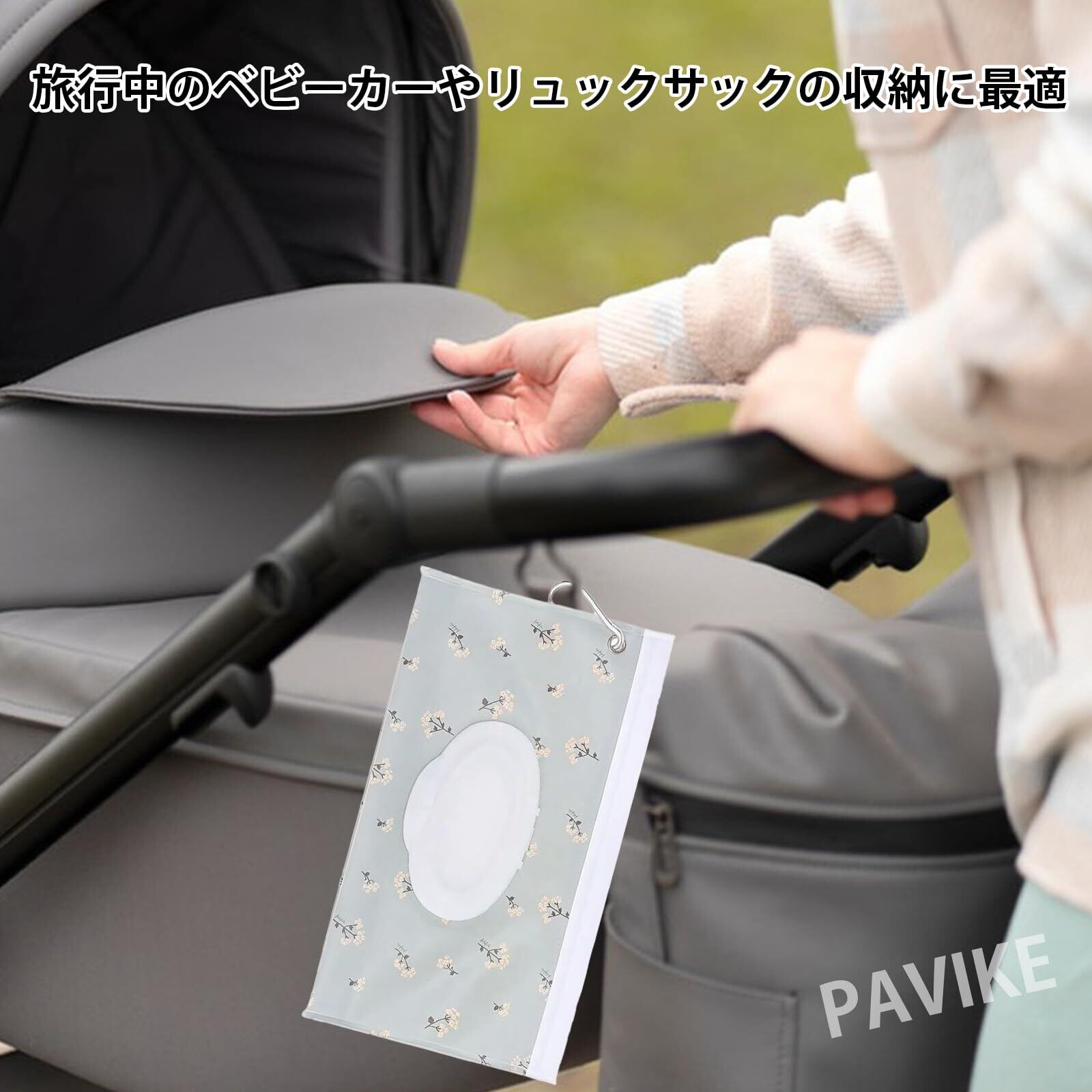 PAVIKE ウェットティッシュケース 持ち運び ウェットティッシュポーチ おしりふきケース 旅行 お風呂場 ベビーカー用 詰め替え可能 約24*13.5*4CM 約40g