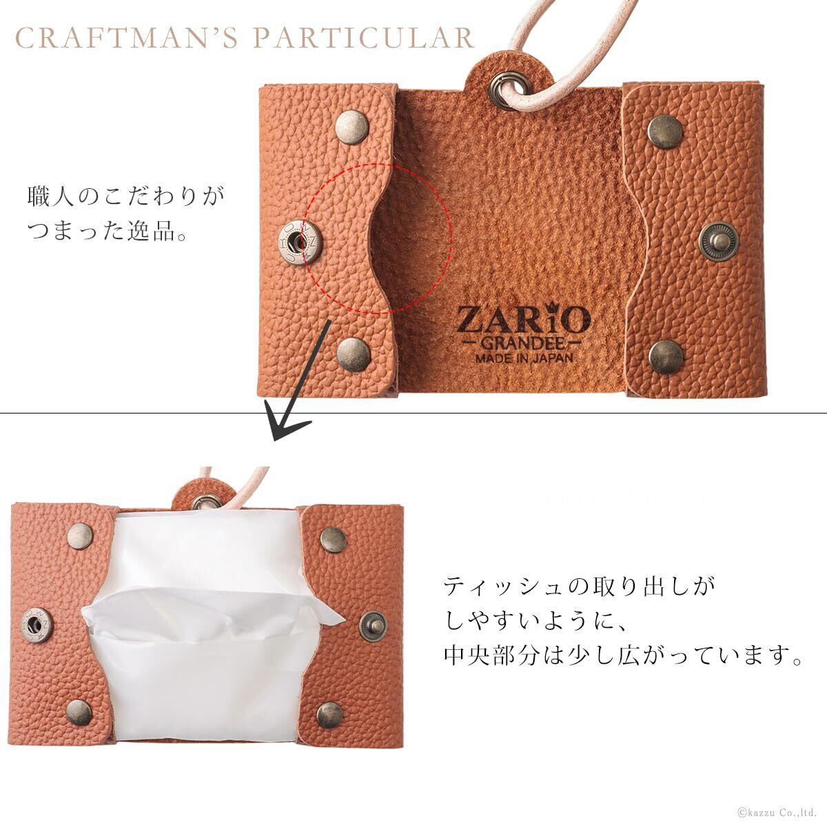 [ザリオグランデ] ティッシュカバー 本革 レザー 革紐付き 二つ折り コンパクトサイズ 日本製 【ZAG-206T】 (ブラック)
