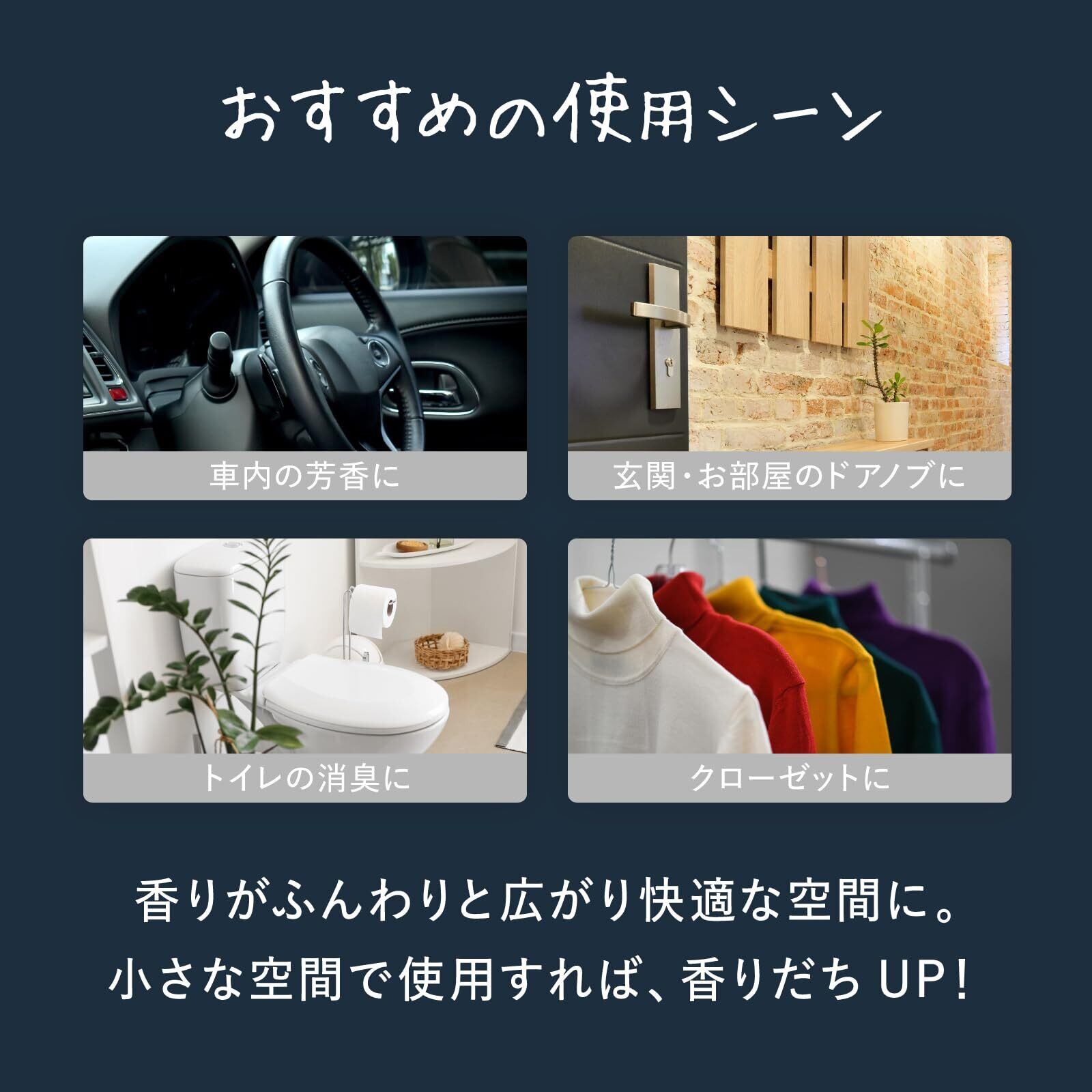 車内や玄関、クローゼット、ロッカーなどの狭い空間に吊り下げて使うと香りを楽しみやすいペーパータイプのルームフレグランス