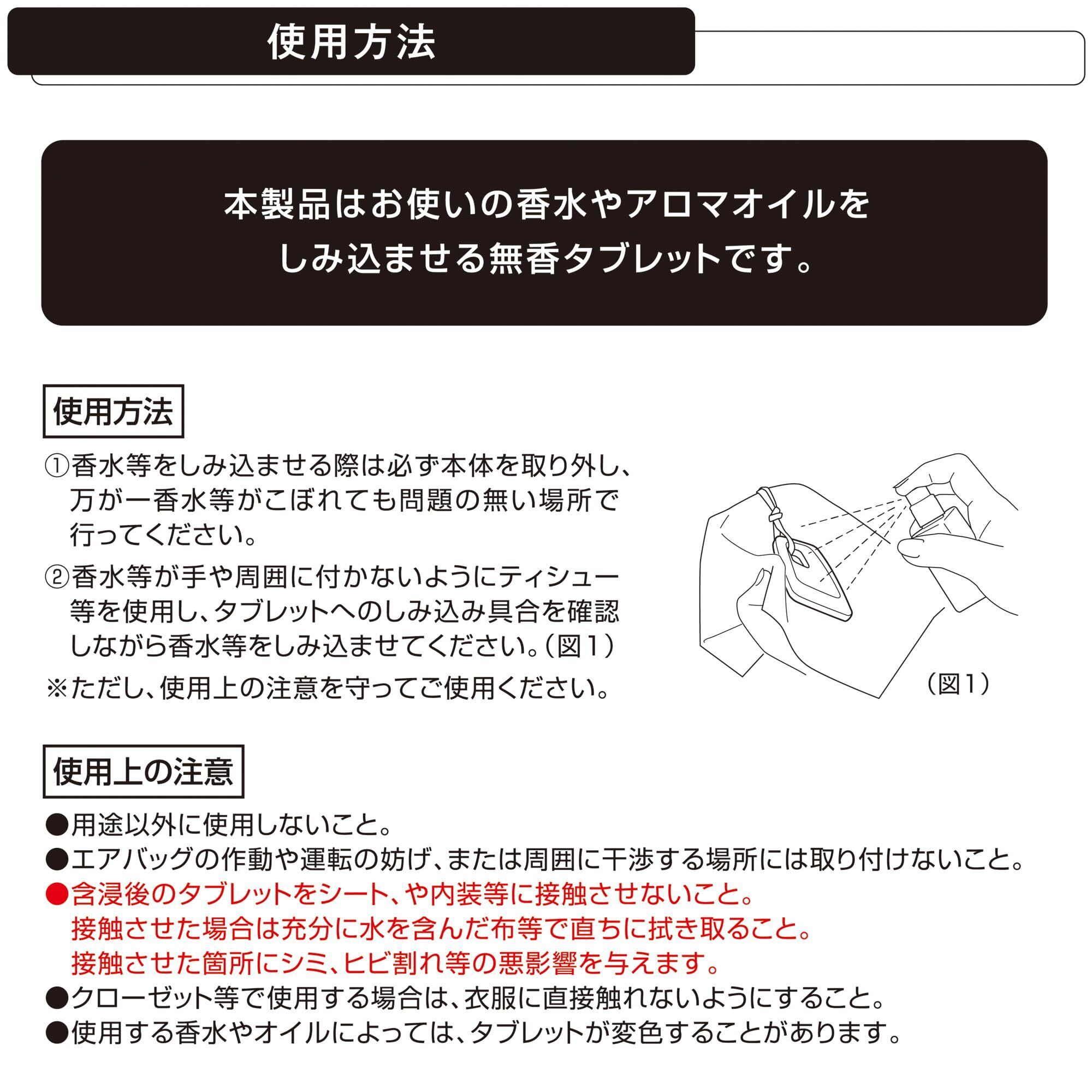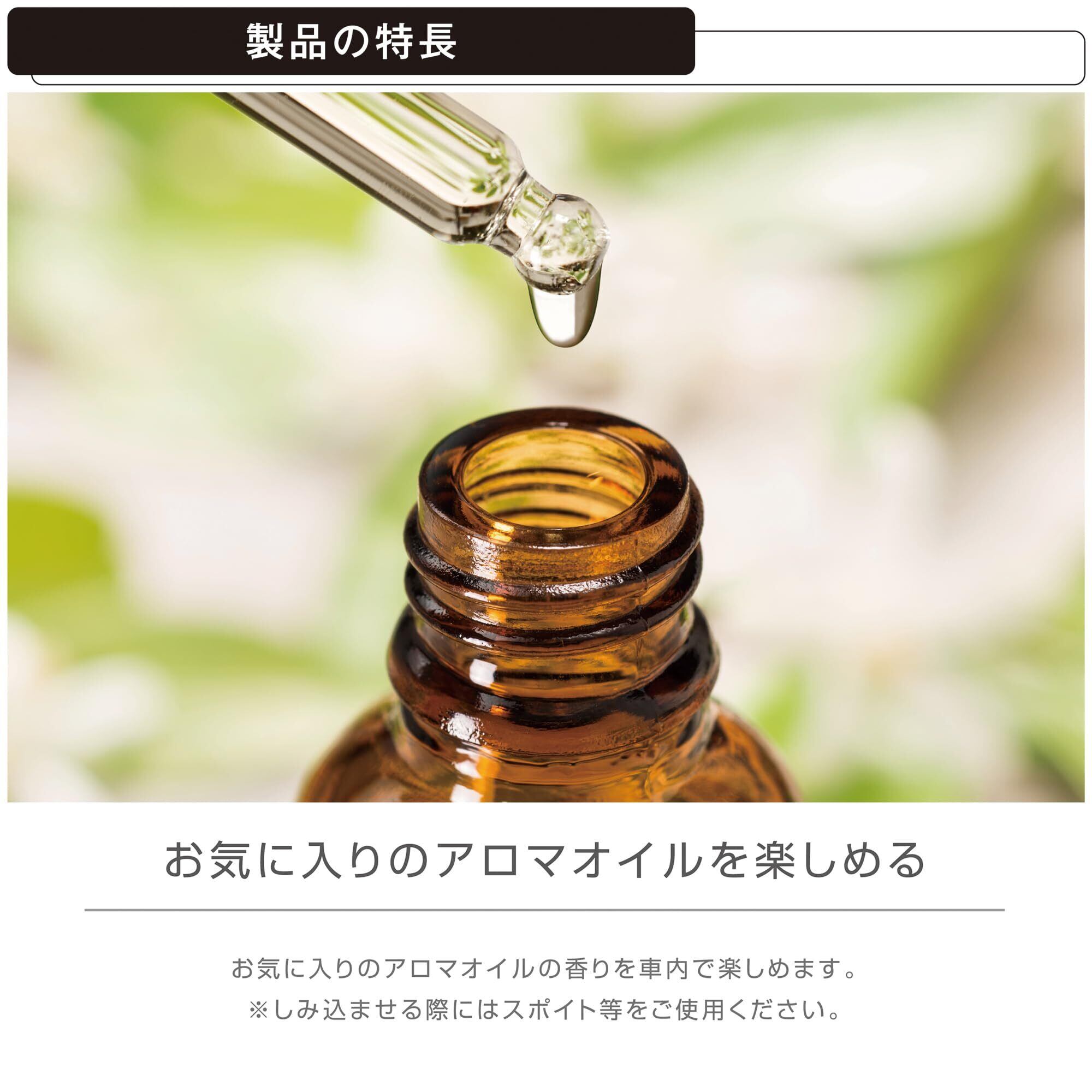 しみ込ませる量を調整することで、香りの強さを調整できます ※本製品に香水・アロマオイルは付属していません