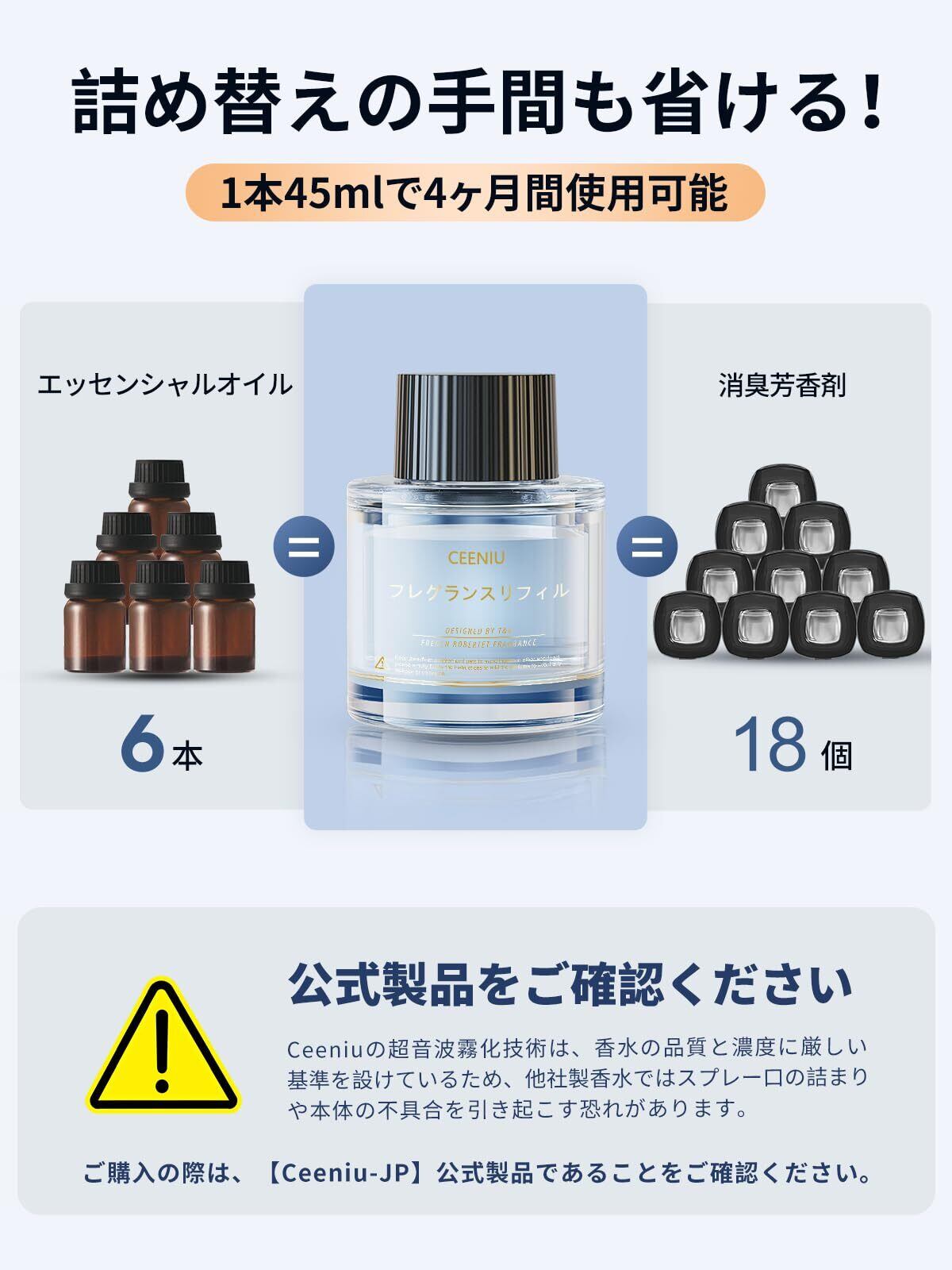 【在庫処分】Ceeniu 車 芳香剤 F26/F39特製フレグランスリフィル 45ML せっけんの香り 石鹸 天然植物抽出物 長持ち 車 消臭 ディフューザー Car Fragrance