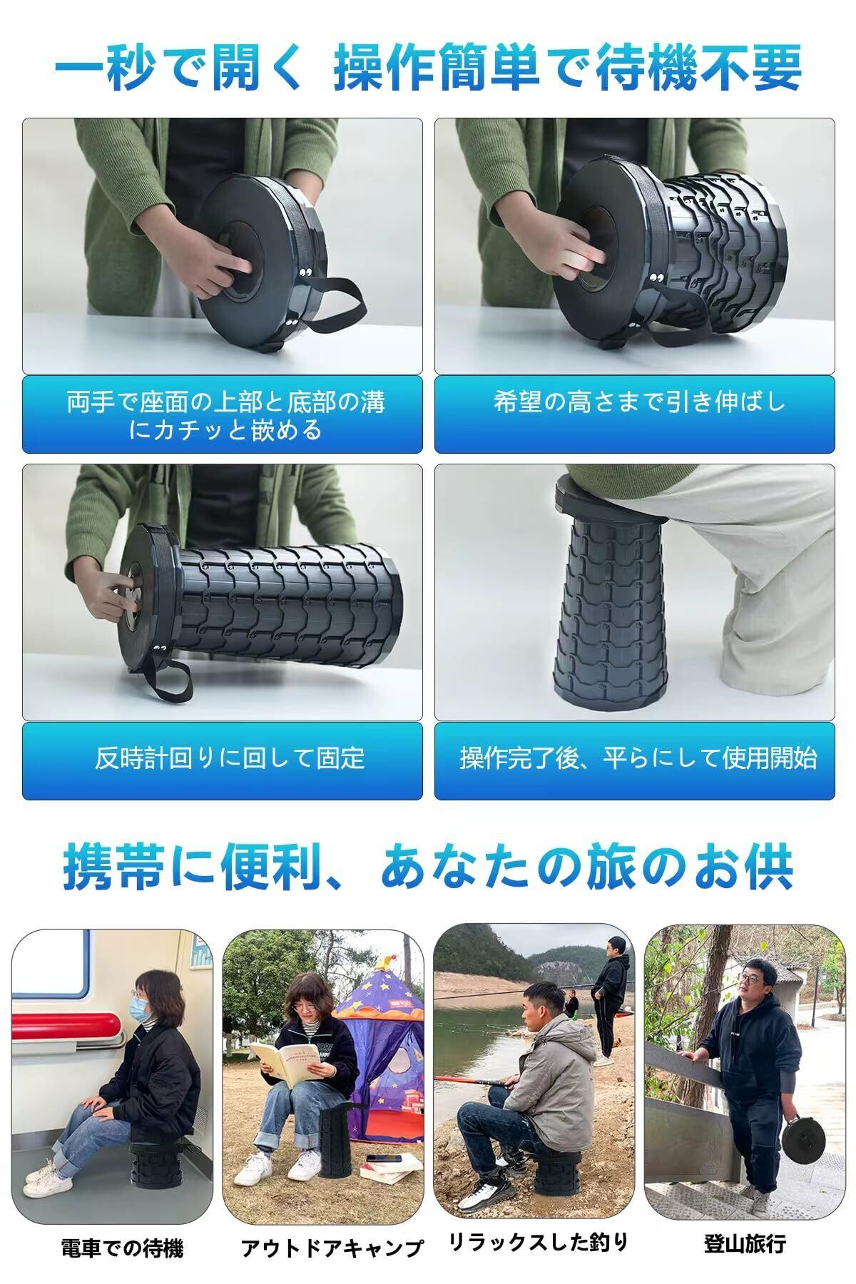 折りたたみ椅子 どこでもすぐ座れる!|1秒開閉&高さ調節OK|キャンプ・行列・屋外イベントに最適な軽量チェア