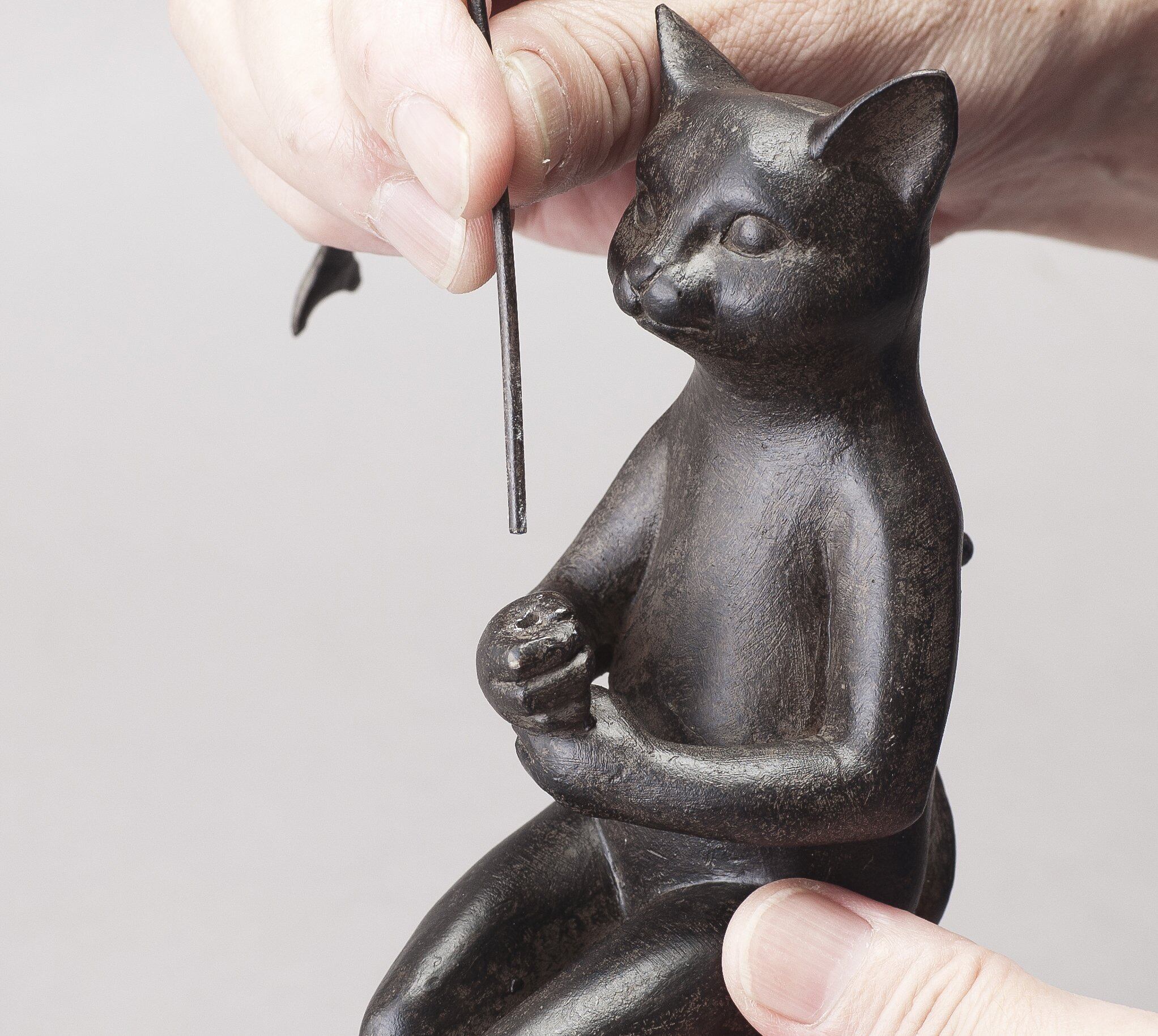 猫の置物 ねこの置物 アンティーク雑貨【釣りをする猫】