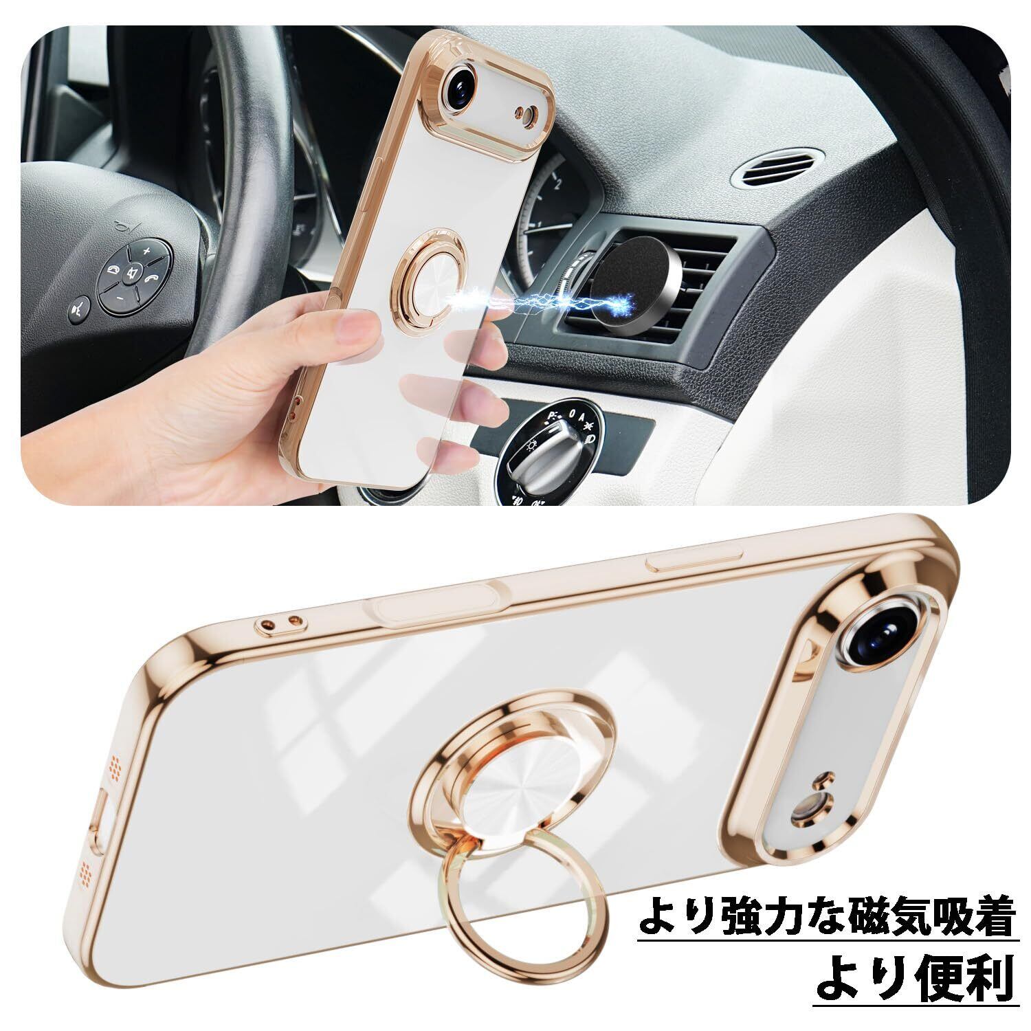 【こだわり設計】リングはケースにしっかり固定されていて、縦置き、横置きどんな角度でも固定できます。レンズと画面より高い立ち上がり有効的にレンズと画面の摩損を防止する。ボダンホール部分はぴったり合うだけではなく、操作しやすい最適のサイズで作られる。