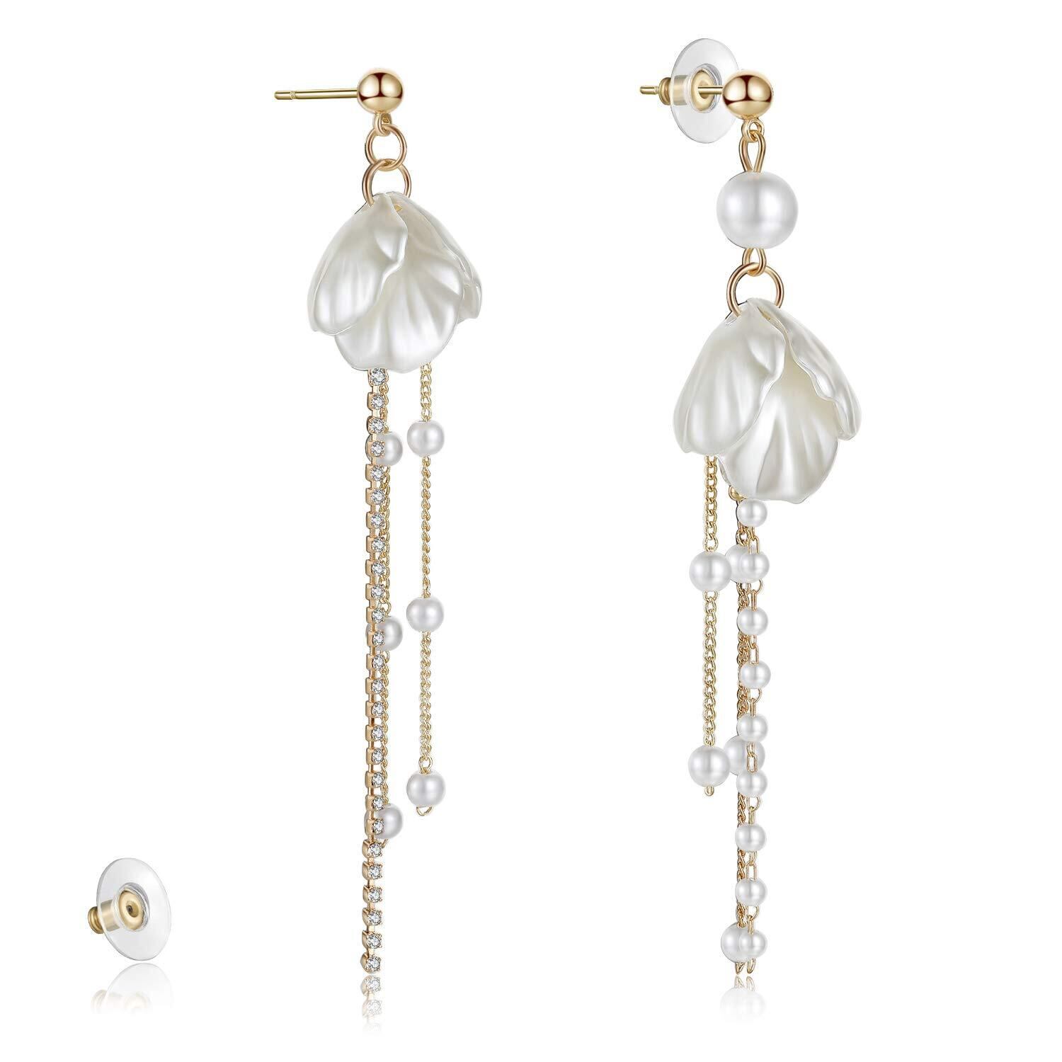 【数量限定】KRUCKEL 揺れる ピアス ロング 花 パール 上品 ゴールド 女性 レディース 人気 ブランド 金属アレルギー対応 Peach Blossom Flower Dangle Earrings - 7079121