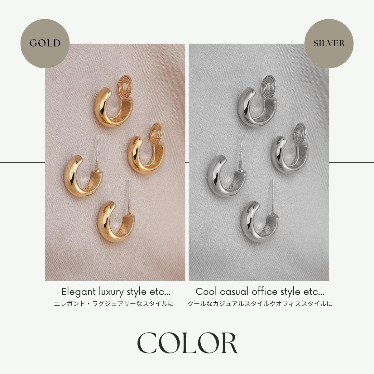 【人気商品】[クライフ]イヤリング ピアス見え ピアス Verも有り 金属アレルギー対応 痛くないイヤリング イヤーカフ シンプル ぷっくり ゴールド/シルバー