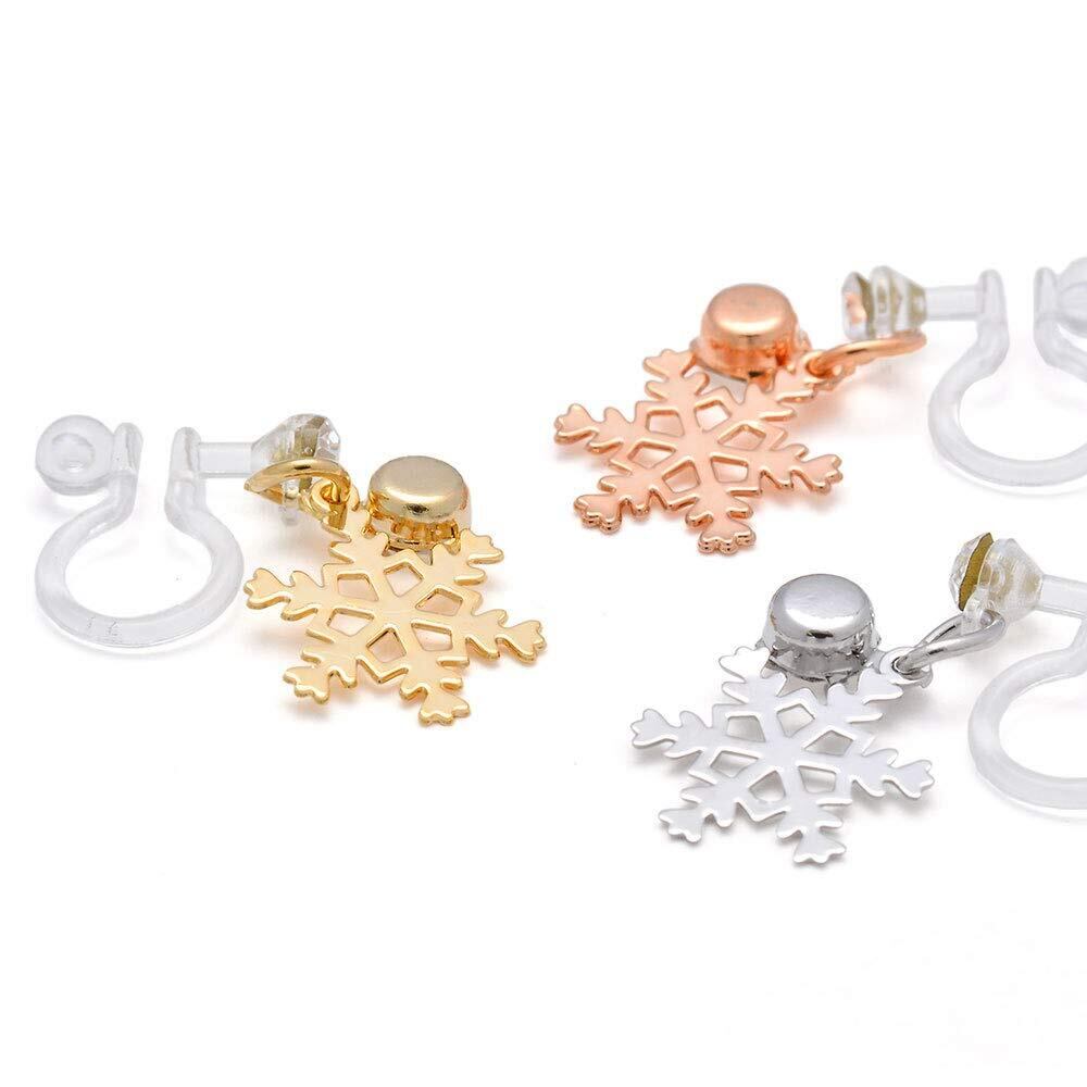 【新春セール】[パリスキッズ] イヤリング ノンホール 雪の結晶 スノークリスタル プレート ラインストーン キラキラ ゴールド シルバー ピンクゴールド ピアスに見える