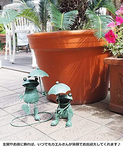村田屋産業 置物 オブジェ フロッグ アンブレラ座り 約11×11×17cm グリーン 4875
