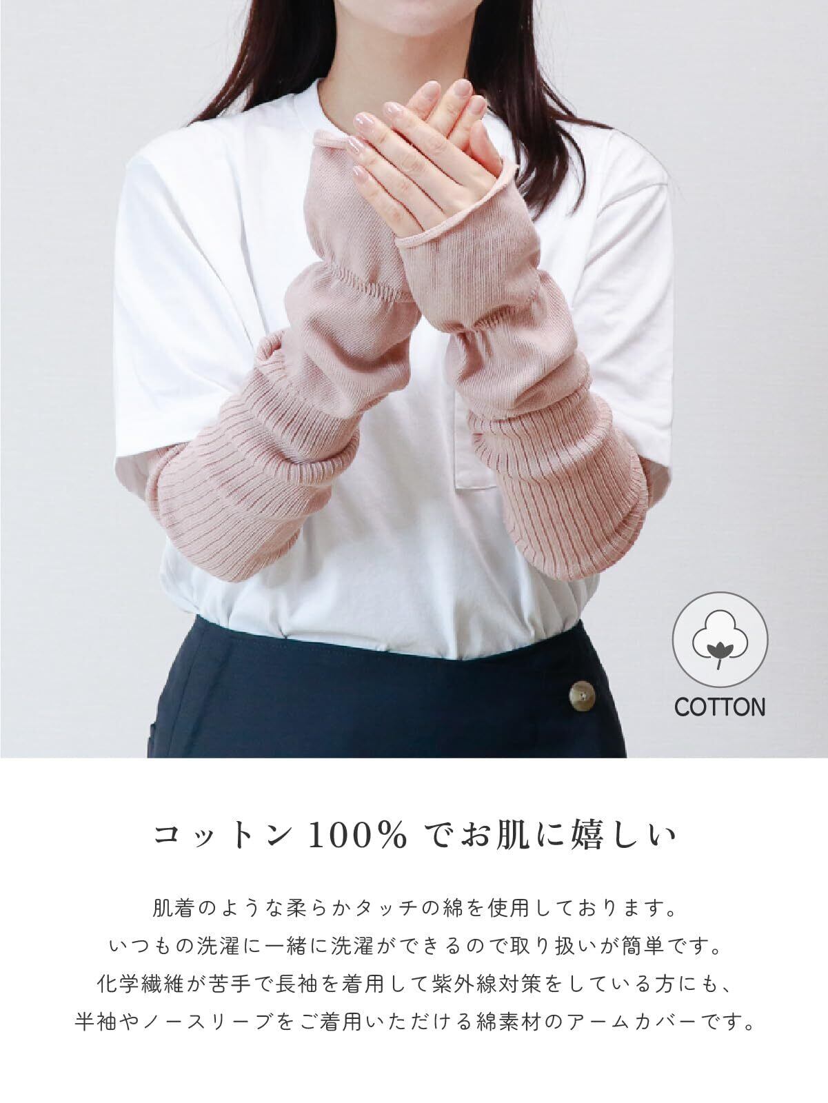 [Maison Peony] アームカバー ルーズタイプ やや厚手 コットン ゆったり リブ編み 平編み ロング UVカット 日焼け対策 紫外線対策 冷え対策 クーラー ドライブ 運転 天然繊維 綿100 温かい アームウォーマー レディース