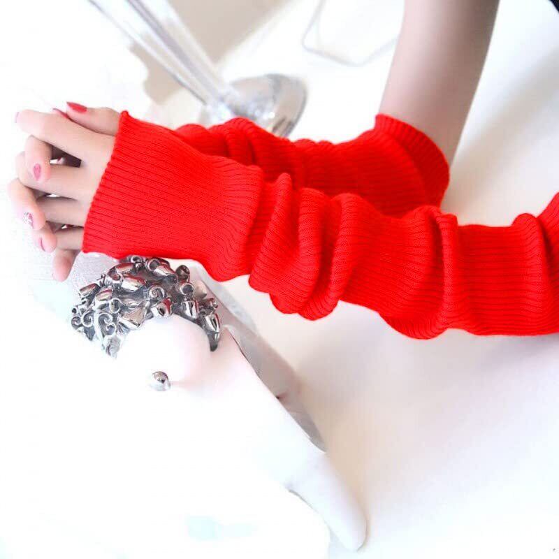 トレンドのカラフルなニットアームカバー!普段のコーディネートにプラスするだけでかわいさを演出